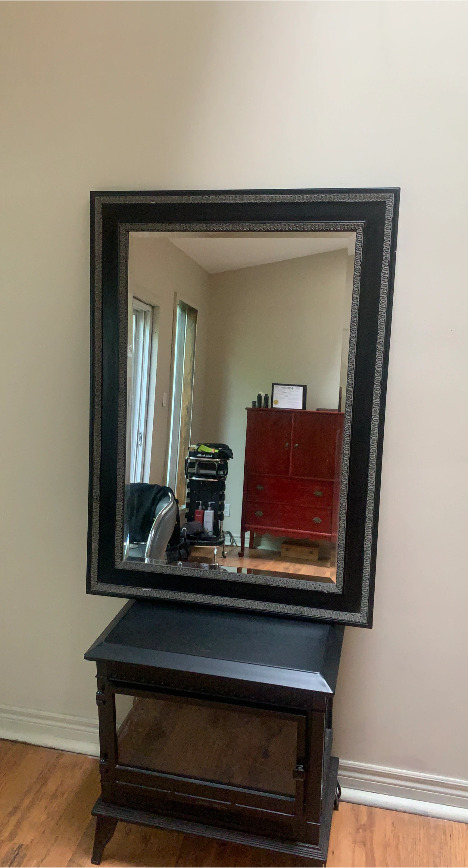 Selling a large mirror with a black frame. It's in great condition and ready to add some style to your space