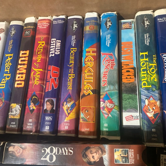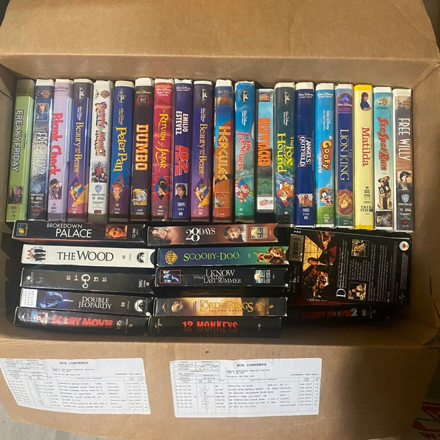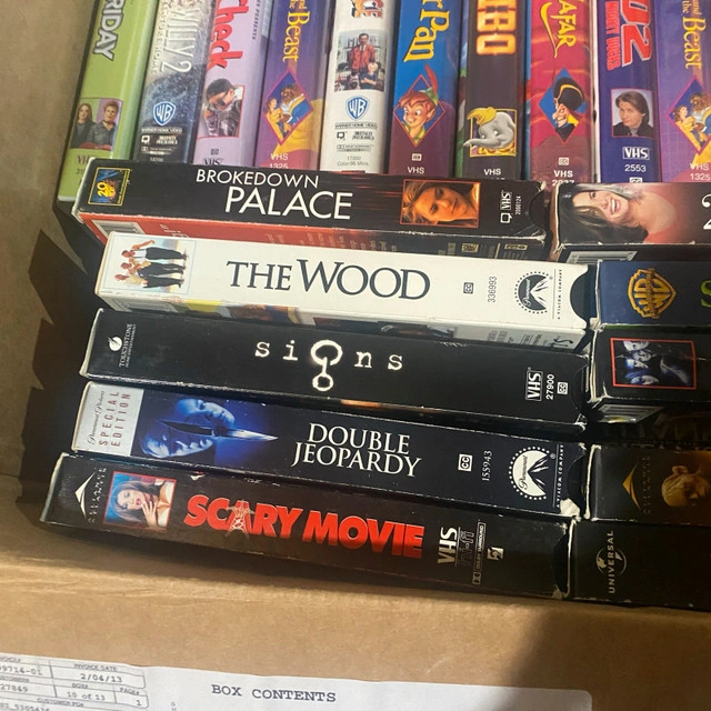 Approx 80 tapes total, all inside the box. Great titles. Pick up in Morningside SW Airdrie or Inglewood SE Calgary on weekdays.