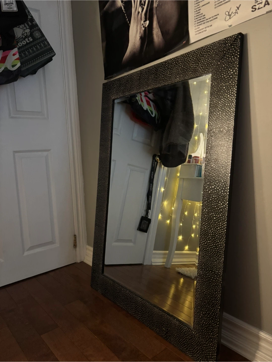 Selling a large decorative wall mirror. It's in great condition and ready to brighten up your space! The mirror has a unique textured frame that adds a touch of elegance