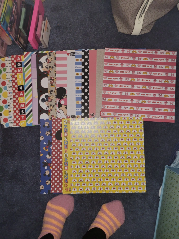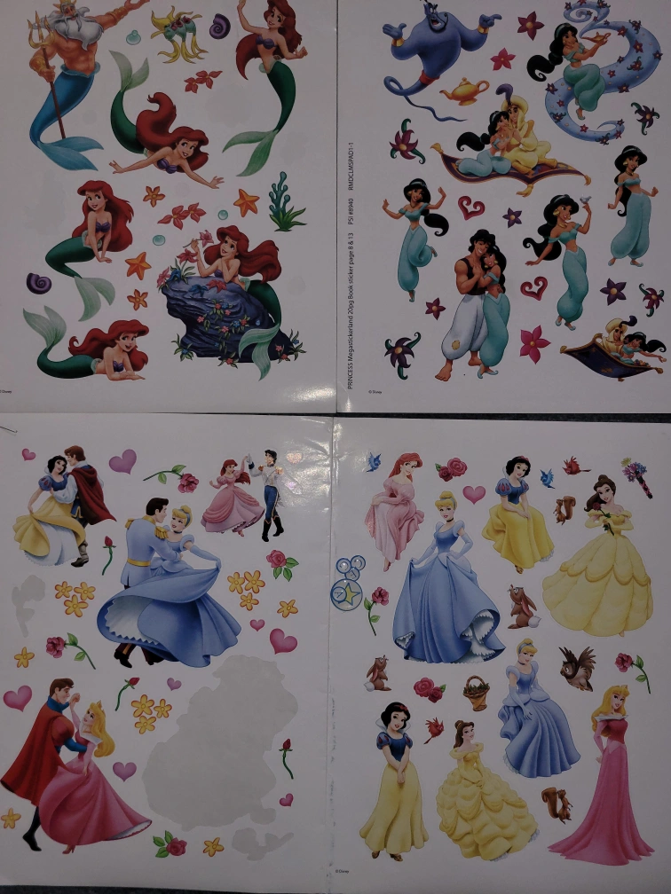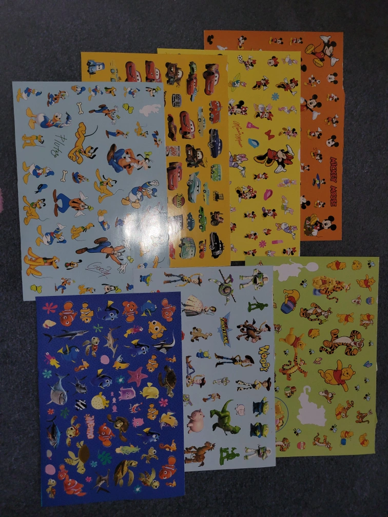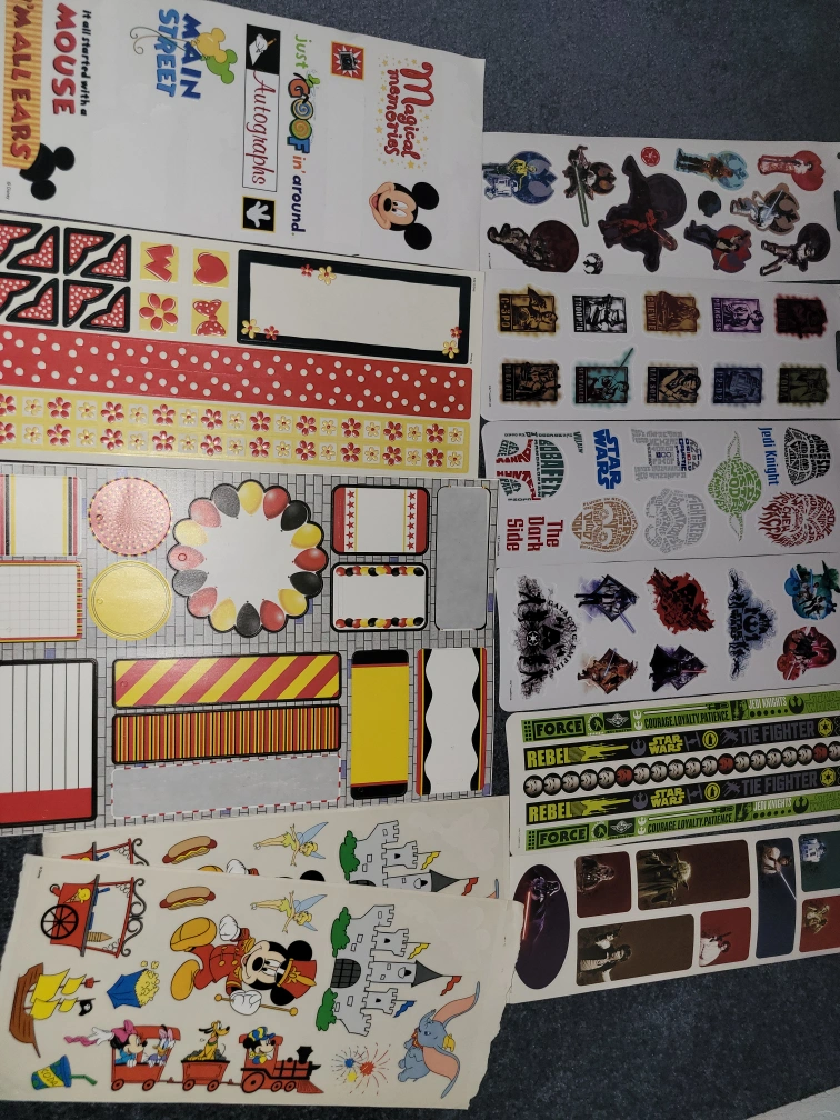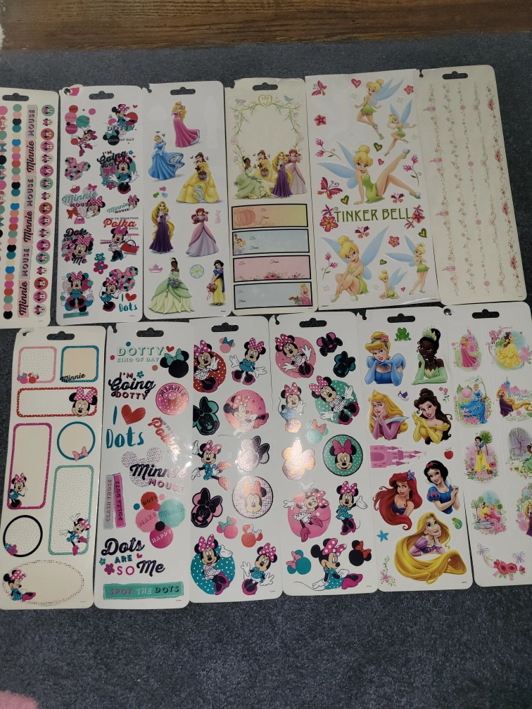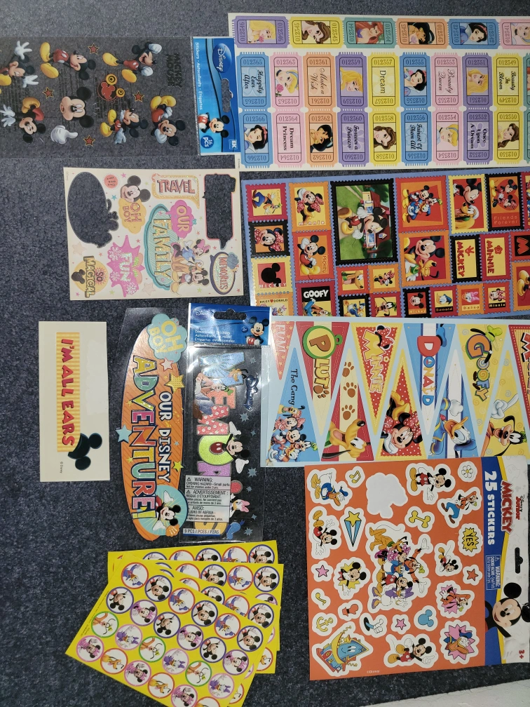 Huge collection of Disney themed stickers and paper. Includes princesses, Mickey Mouse, villains, and more. Perfect for scrapbooking or crafting projects. Various characters and designs. Includes 12x12 papers, more than enough stickers, and 4x6 and 3x4 cardstock. Asking $100 O.B.O.