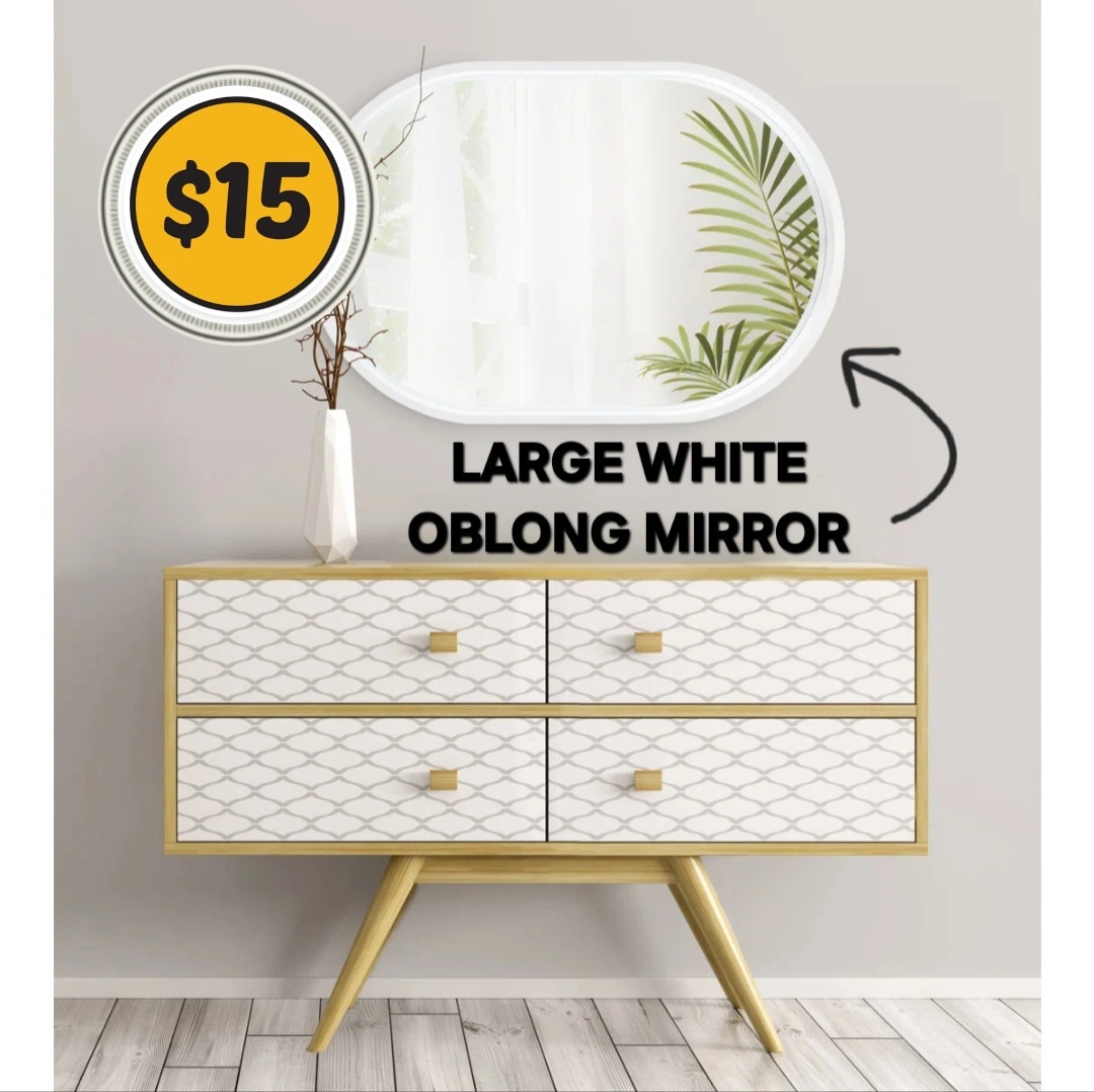 Large Oblong Mirror -In very excellent condition - like new! -From: Wayfair -Size: Large -Shape: Oblong -Measurement: 34" x 29" -Frame: White -Can be wall mounted or table sat -Beautiful, simple, elegant, classy wall mirror that will add a clean, polished look to any room in your home or office 📸PLEASE SEE PHOTO GALLERY FOR MORE DETAILS ABOUT THIS ITEM📸 Asking only $15 (FIRM & FINAL) 💰CASH ONLY, PLEASE💰 ⚠️Please only message if you are SERIOUS about buying AND you know when you'd like to pick up.⚠️ 🚙Located in North Oshawa BEATRICE & RITSON area.🚙 ⏰️No holds longer than 2 days.⏰️ ❗️CROSS POSTED❗️