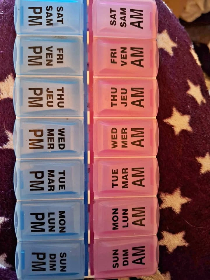 Large pill organizer with morning and evening. Fits up to 8 large capsules in each slot. Pick up near Prairie Avenue and Cedar drive. Cash only. DO NOT ASK FOR MY ADDRESS UNLESS YOU HAVE PROVIDED AN EXACT PICKUP DATE AND TIME