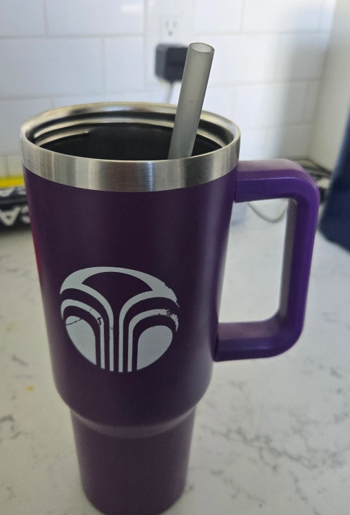 I'm selling a purple stainless steel tumbler. It includes a straw and is in great condition! It's perfect for keeping your drinks cold or hot on the go
