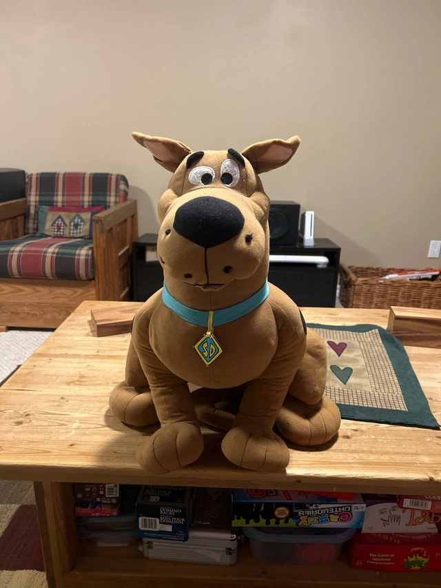 Early 2000s scooby doo stuffed animal stands about 2 feet tall. Very good condition, never played with, always used for decoration.