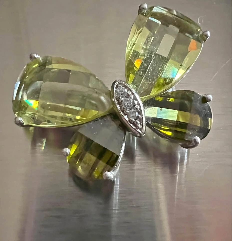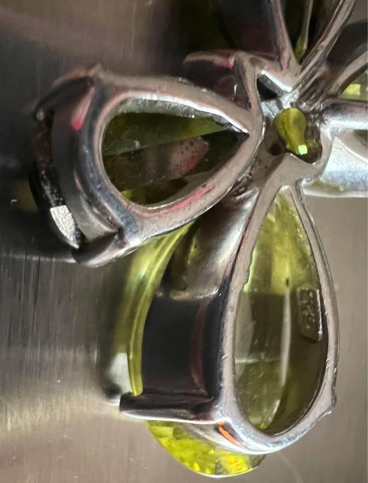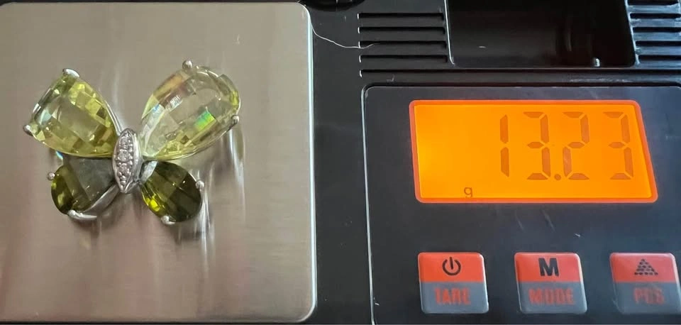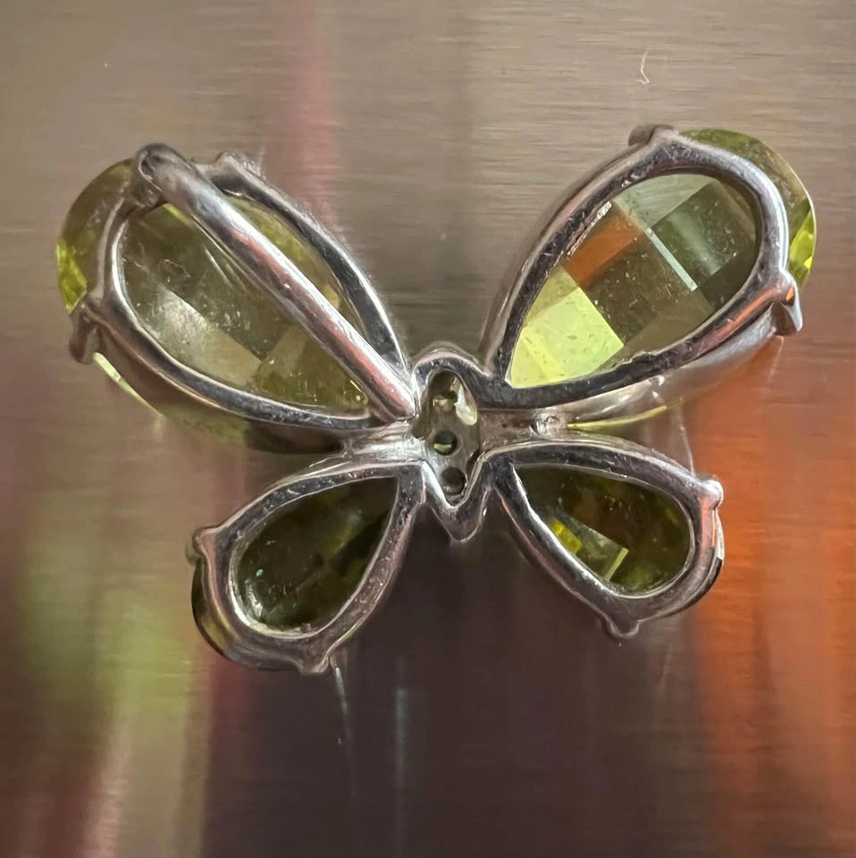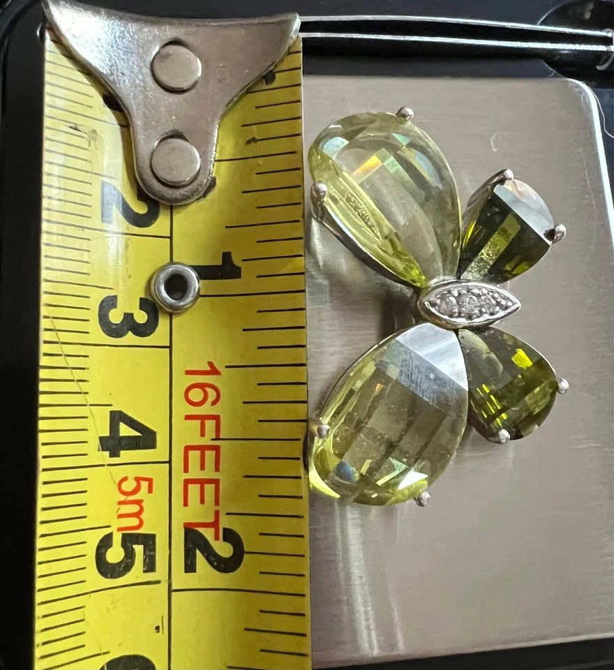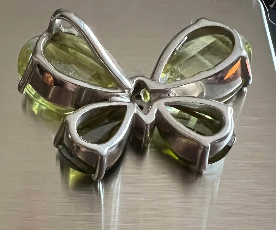 Green Sterling Silver Butterfly Pendant. Rhodium Plated. Marked 925. 13.25 grams. Note: Matching ring also available. Pick up in Brighton