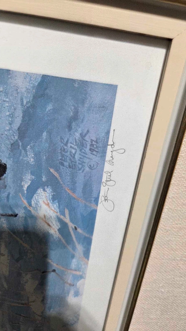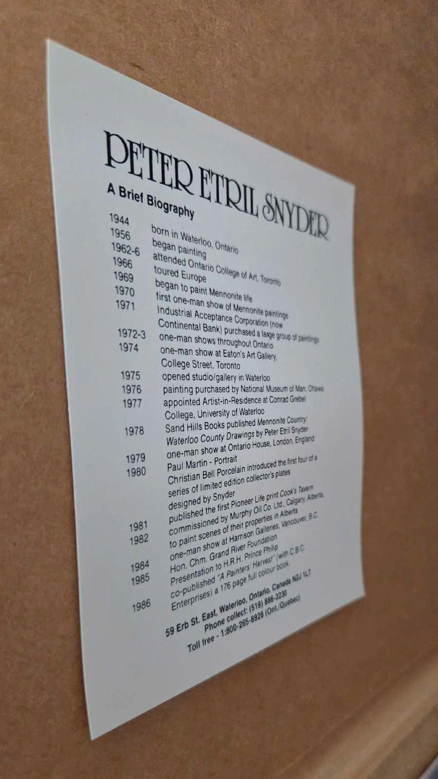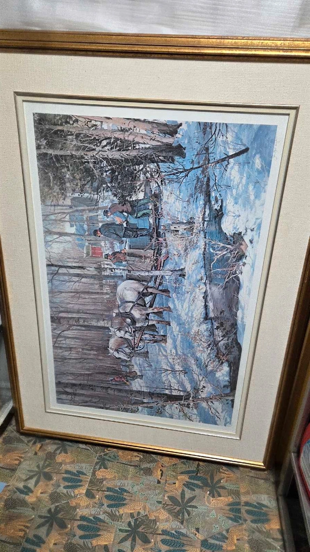 Beautiful large frame in excellent condition. Has original limited edition print signed by Canadian artist Peter Etril Snyder. Frame: 34 x 48", art: 23.5 x 36"
