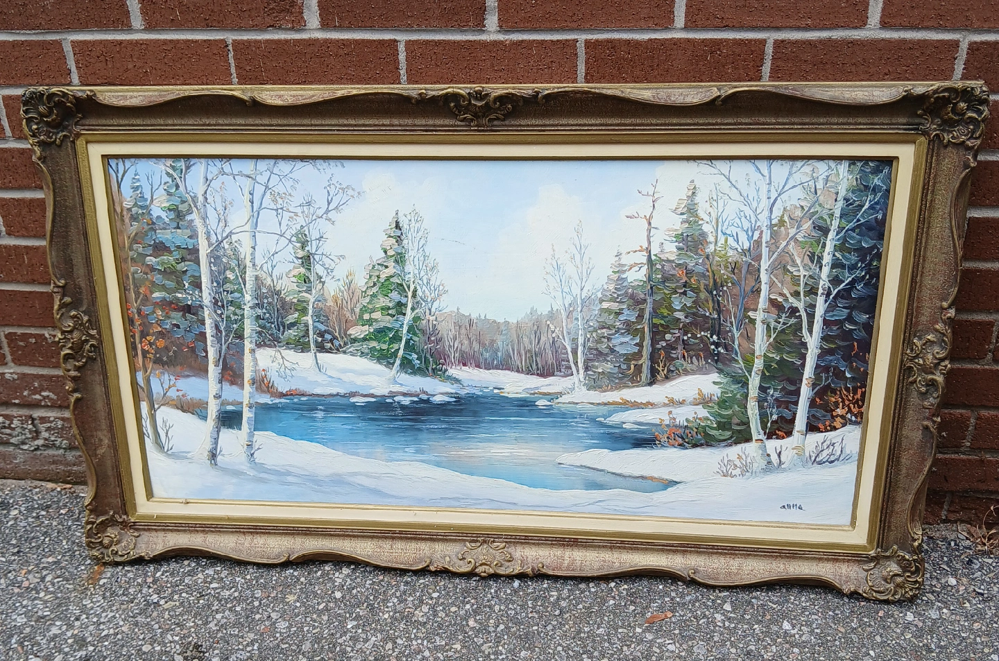 47 by 27 inches 1970s painting by artist Anna Jalava