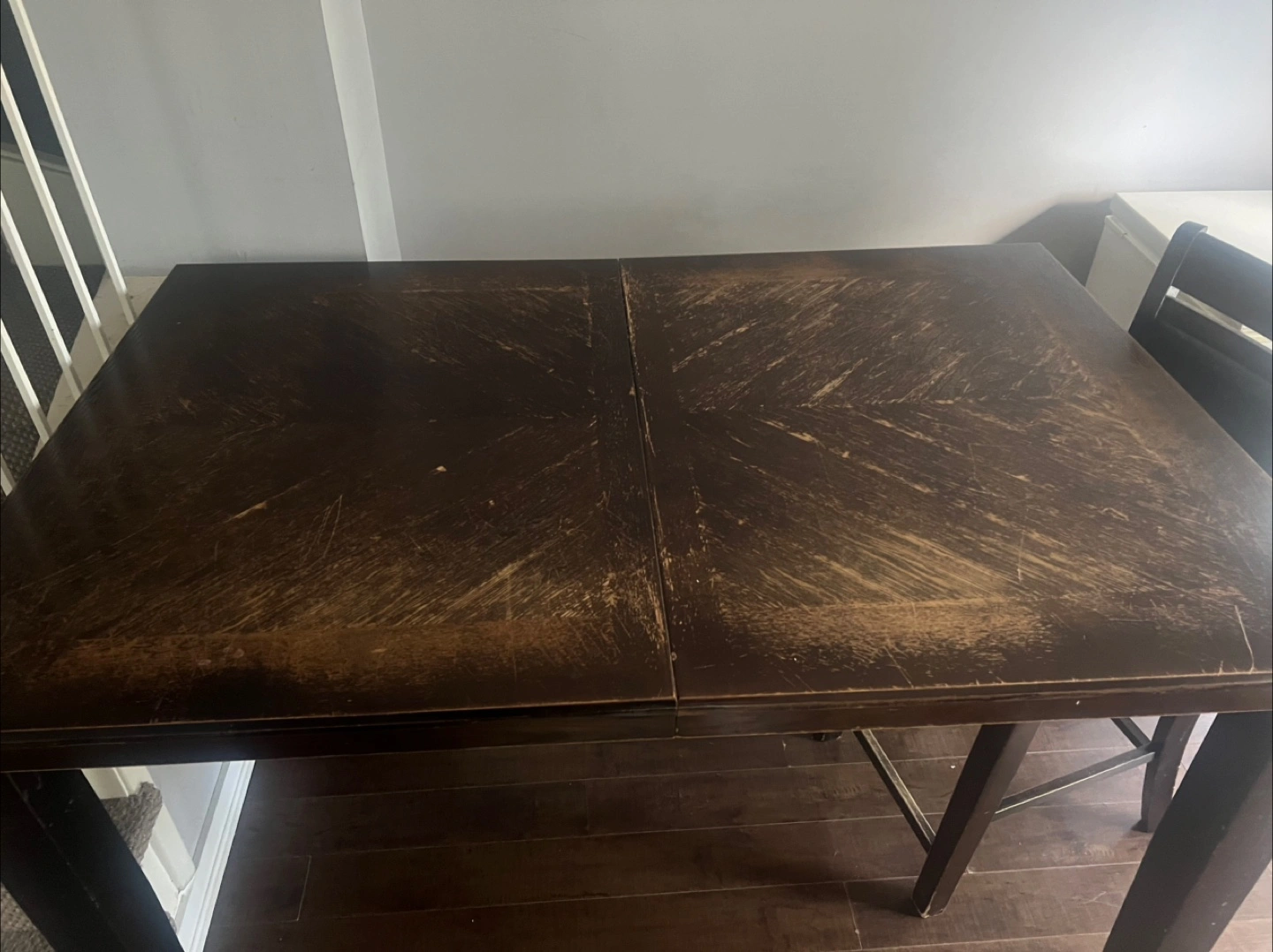 Dark Wood Dining Table with 4 Chairs – Sturdy & Elegant
