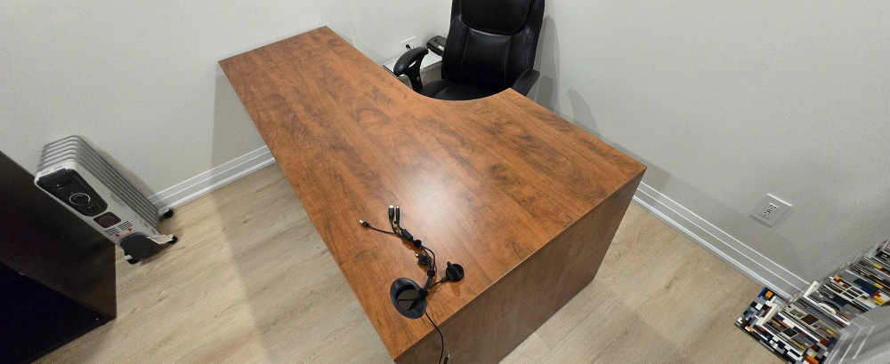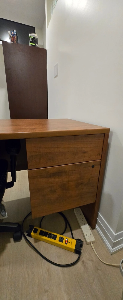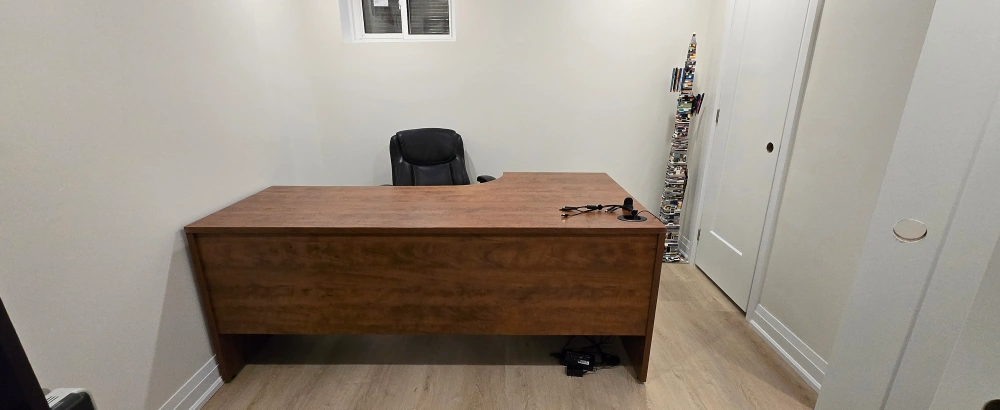 Selling a large L-shaped wooden desk. It's in great condition and ready for a new home office! The desk has total of two lockable double drawers (one on each side). I'm selling it as it is two big for my new space.