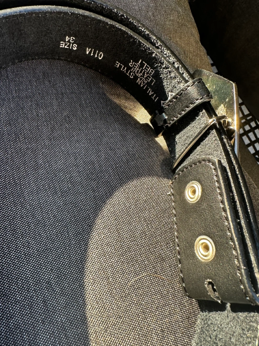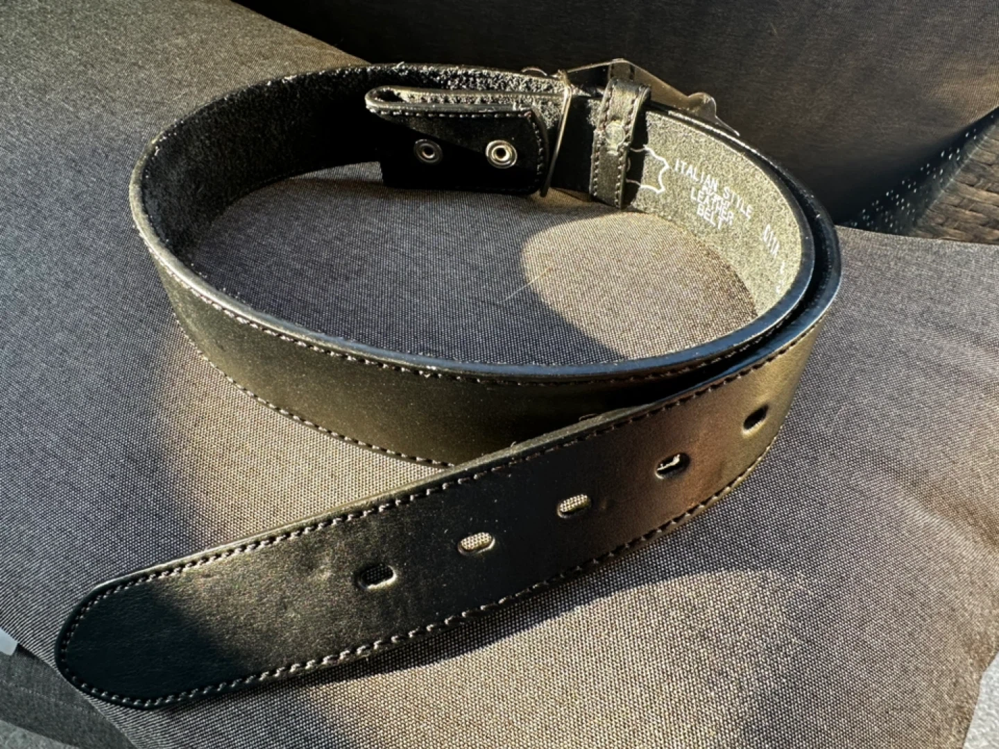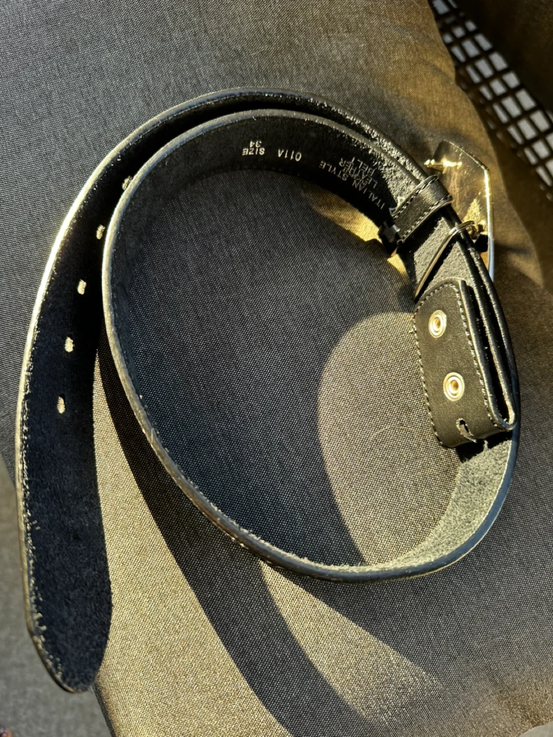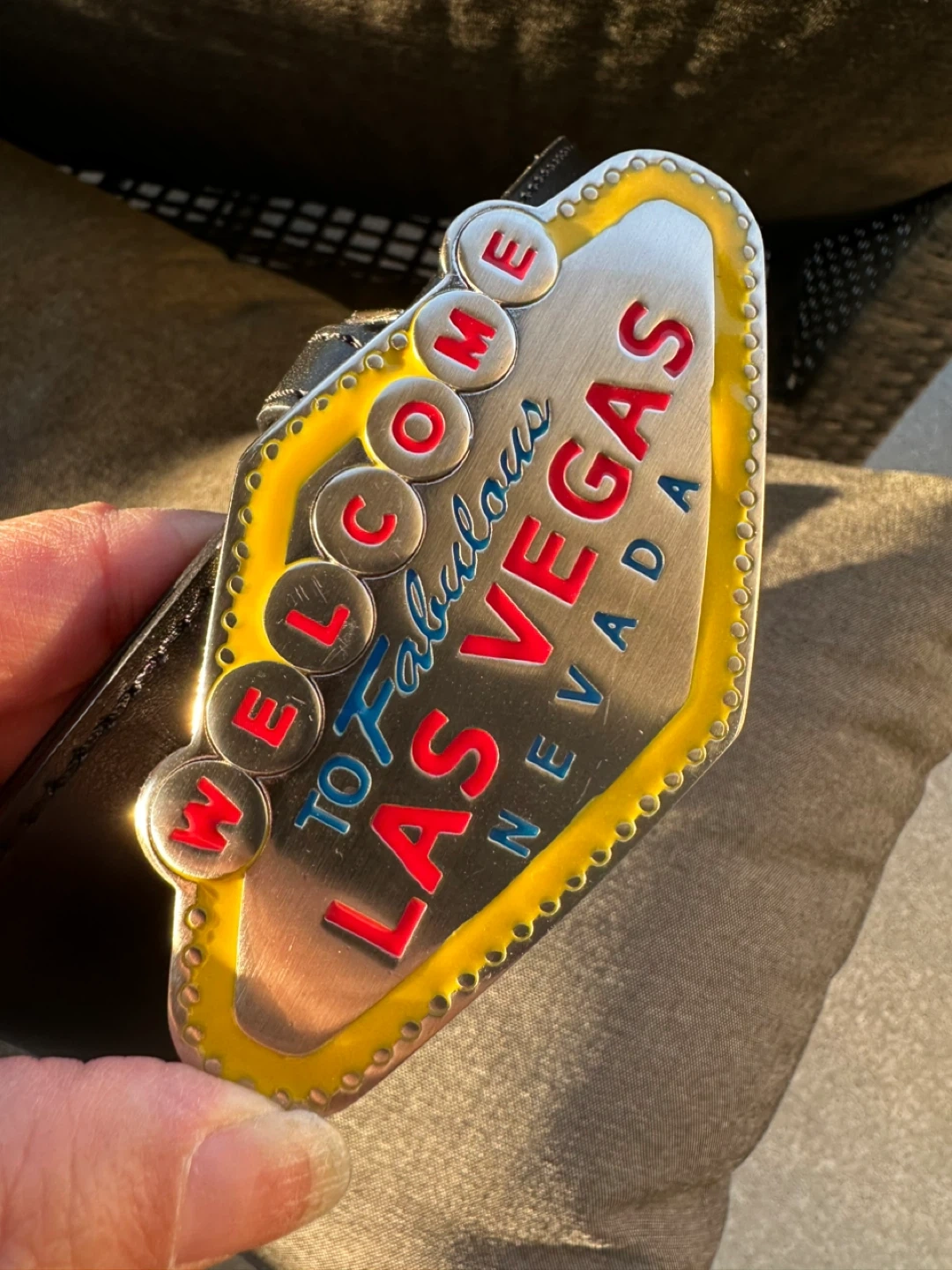 Cool Italian style leather belt with a Las Vegas buckle! The belt is a size 34 Self pickup at Coquitlam Parkway Blvd