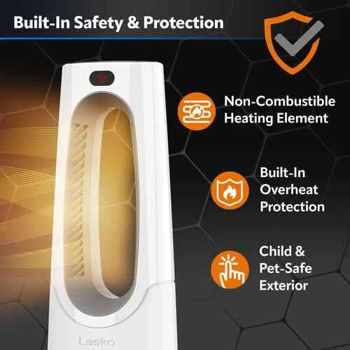 Stay cozy without the clutter of wires with the Lasko Safe Bladeless Ceramic Heater. Model CW105 is a sleek addition to any room, offering the simplicity of a remote control along with traditional push-button functionality for easy operation. Its ceramic build ensures a smooth, consistent heat, and with two heat settings, it's perfect for regulating warmth in spaces of 101 to 150 square feet. Finished in a clean white that complements any decor, this electric tower heater by Lasko provides efficient heating without the hassle of maintenance. The bladeless design ensures safety and quiet operation, making it an ideal choice for both home and office use. Enjoy the blend of modern design and practical functionality with this reliable heating solution.