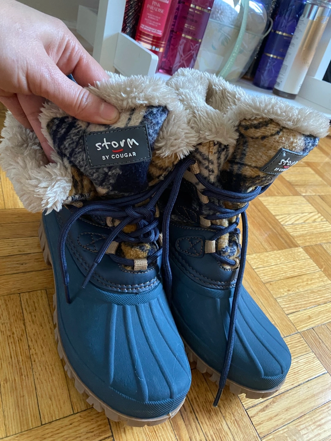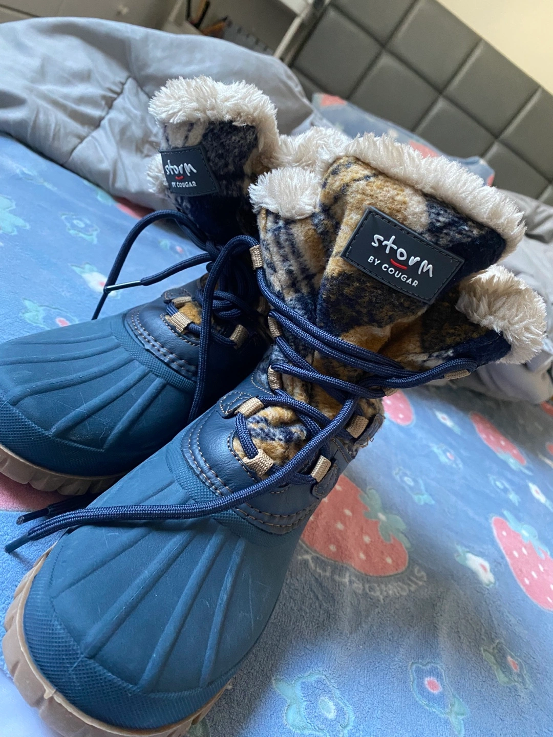 Warm winter boots. Fuzzy lining. Lace-up style. Good tread. winter/snow Boot very clean used only 1 time and it’s already washed.