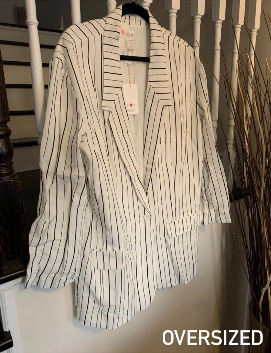Selling a Latiste blazer in an oversized fit! It features a stylish black and white striped pattern. Perfect for adding a chic touch to any outfit