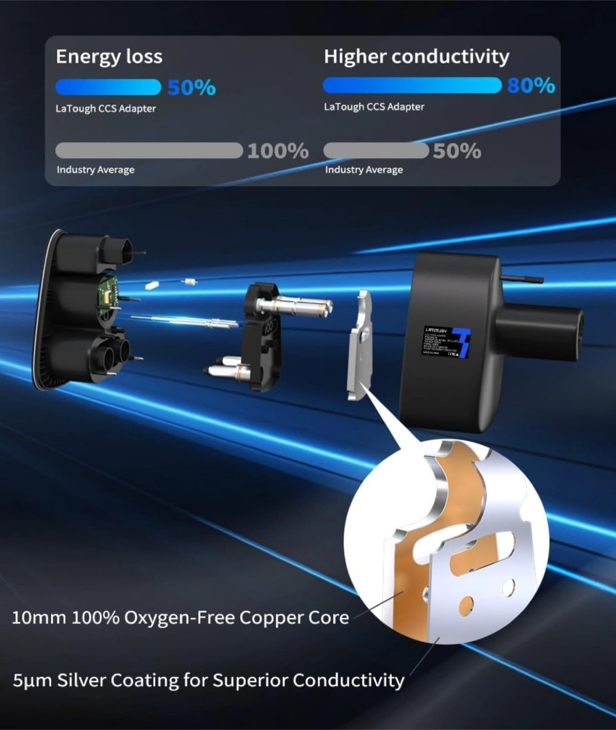 Selling a brand new LaTough CCS1 to TSL adapter! It's still in its original box and has never been used. This adapter is engineered for toughness and has undergone 1,000 rigorous lab tests. It's designed to operate in temperatures ranging from -30°C to 50°C and has a voltage rating of 250V DC. A great way to adapt your charging setup! Asking for $175 obo