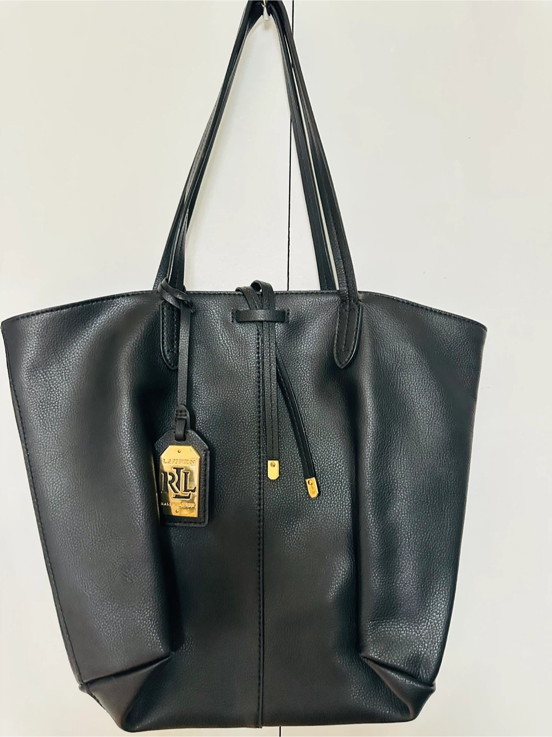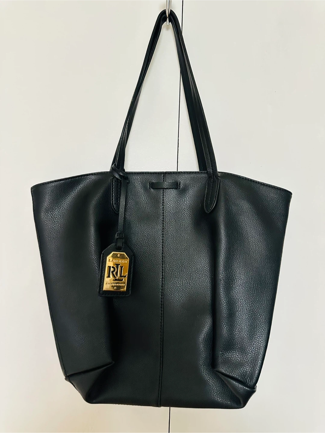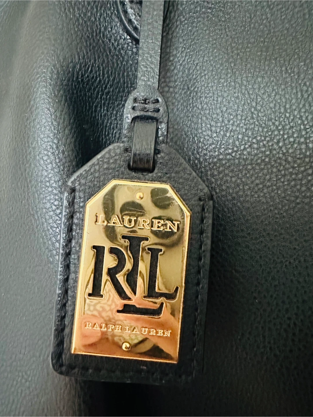 Looking to pass on this stylish black leather tote bag from Lauren Ralph Lauren! It's in great condition and perfect for everyday use. The bag features a classic design with a spacious interior, making it ideal for carrying all your essentials.