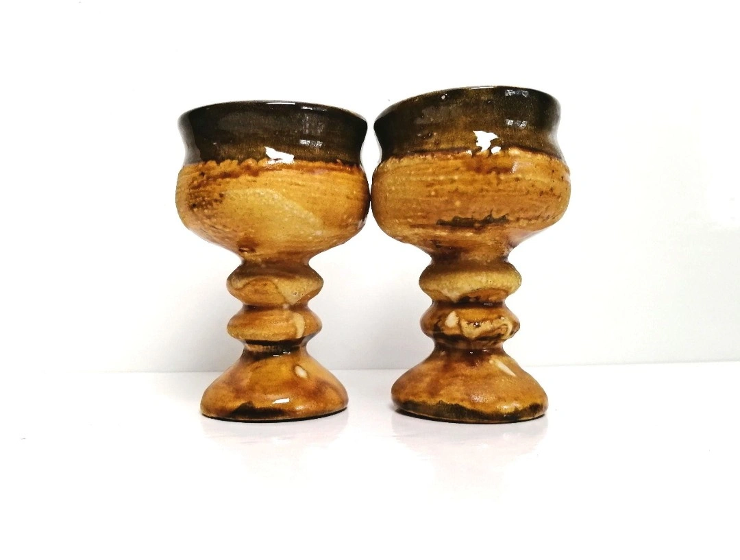 Laurentian Pottery Goblets ~ Pottery Wine Goblet Pair
