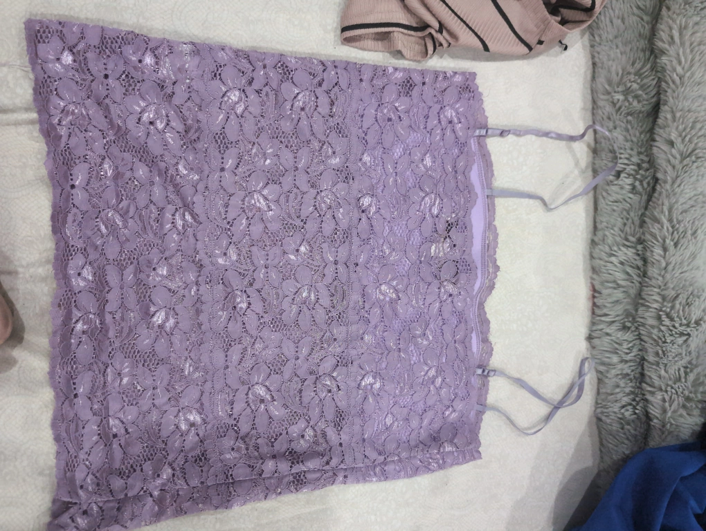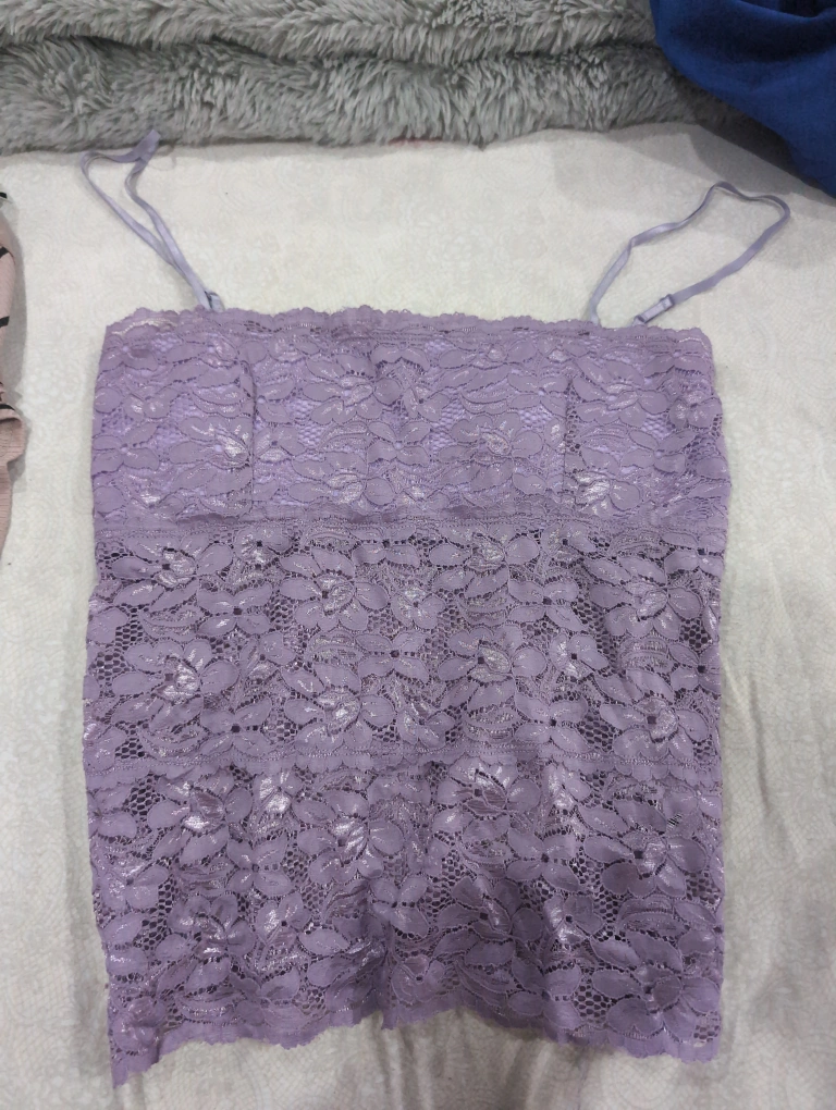 Pretty lavender lace cami. Adjustable straps. Lightweight and stretchy material. Perfect for layering or wearing on its own. Original price: $100