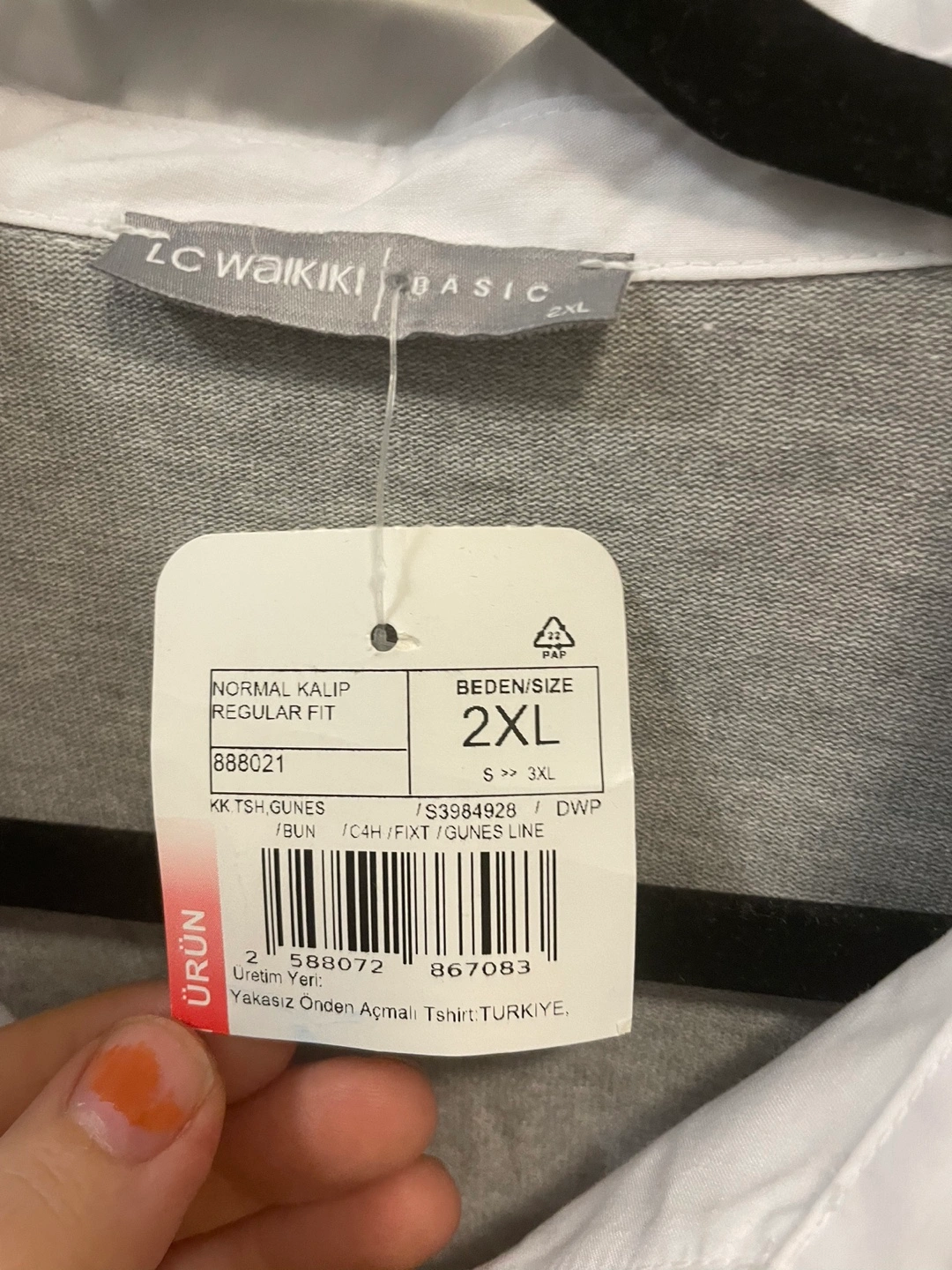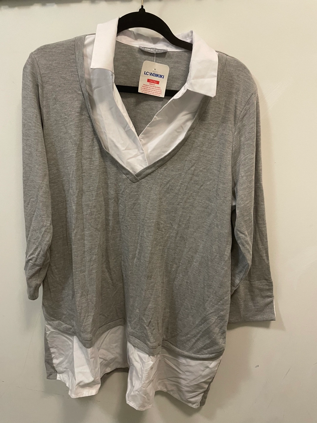 Women's layered blouse. Grey and white. Three-quarter sleeves. V-neck. Size 2XL. LC Waikiki brand. New with tags.