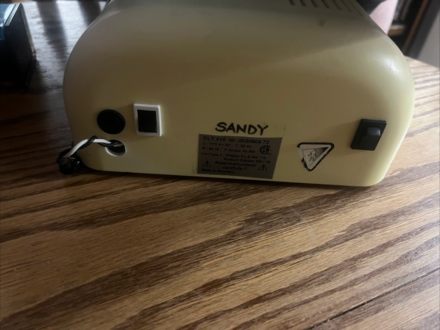 Selling a used LCN Sandy CLT 410 UV nail lamp. It's in good working condition and ready for your next manicure! The lamp is a UV-Type 1 and operates at 50 W / 0.60 A. It's made in Germany.