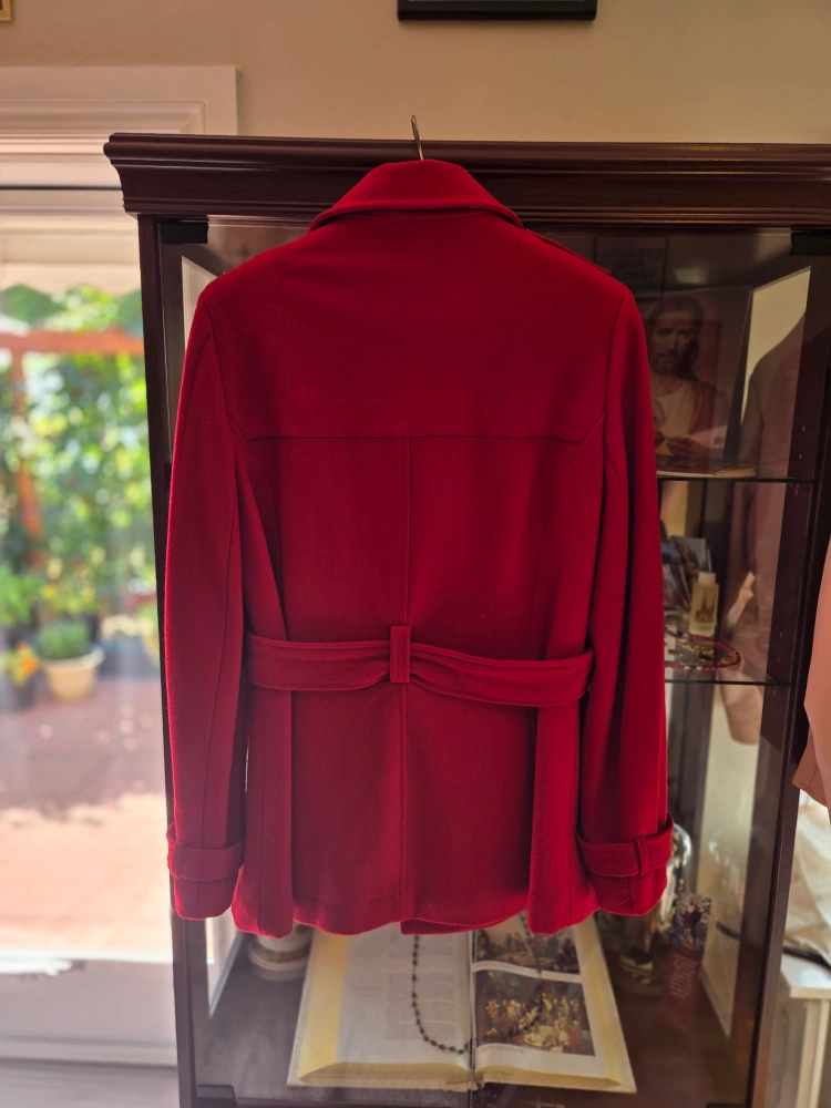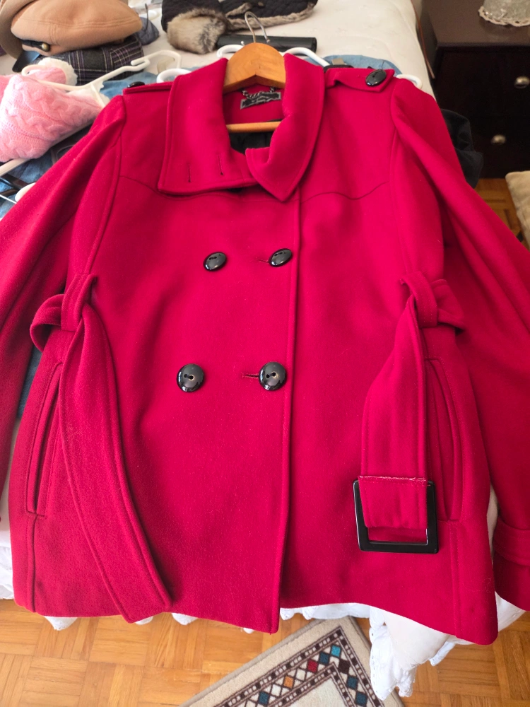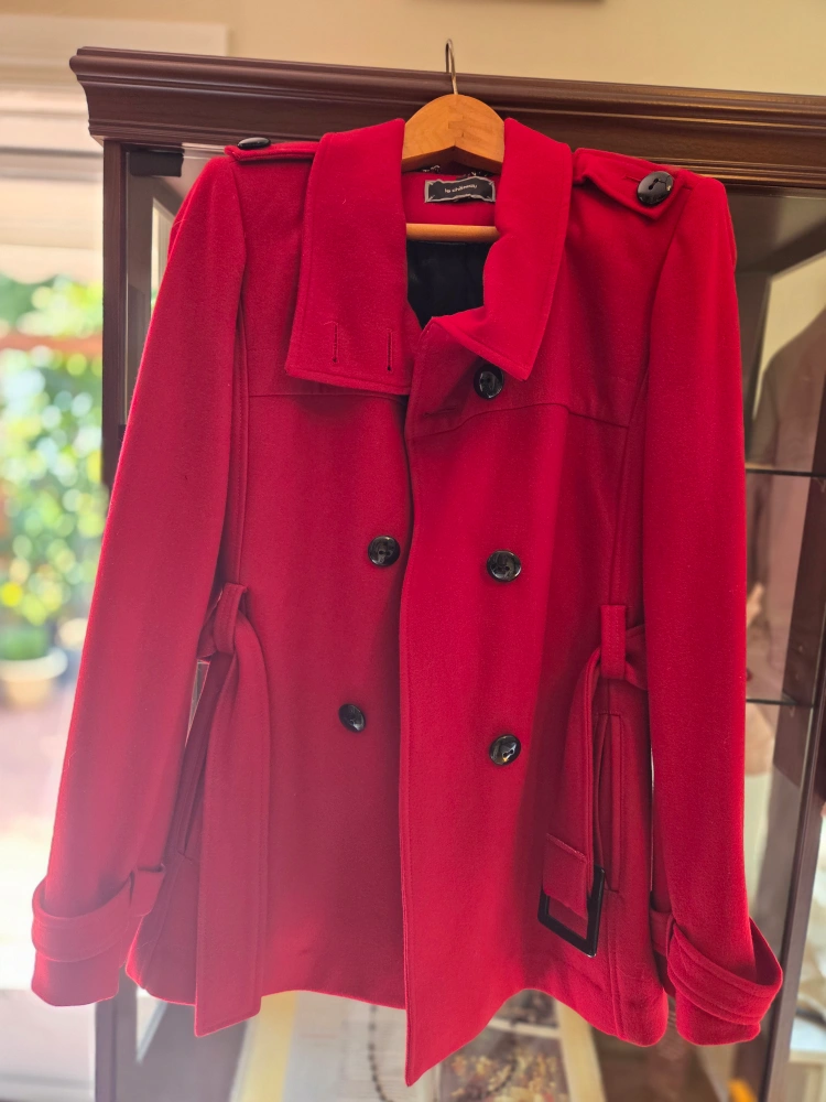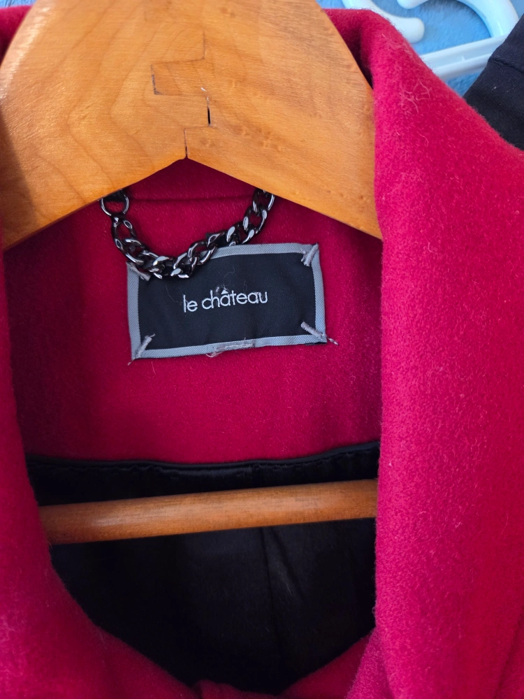 Selling a beautiful red coat from Le Chateau. It is a Woolmark blend with a stylish design. Perfect for keeping warm and looking great!