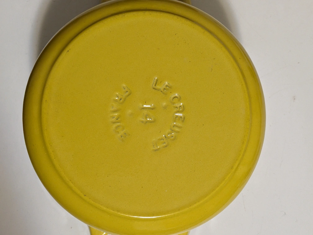 Selling a cute Le Creuset Dutch oven in yellow! It's size 14cm and in great condition. Perfect for cooking up small meals or sides for dinner