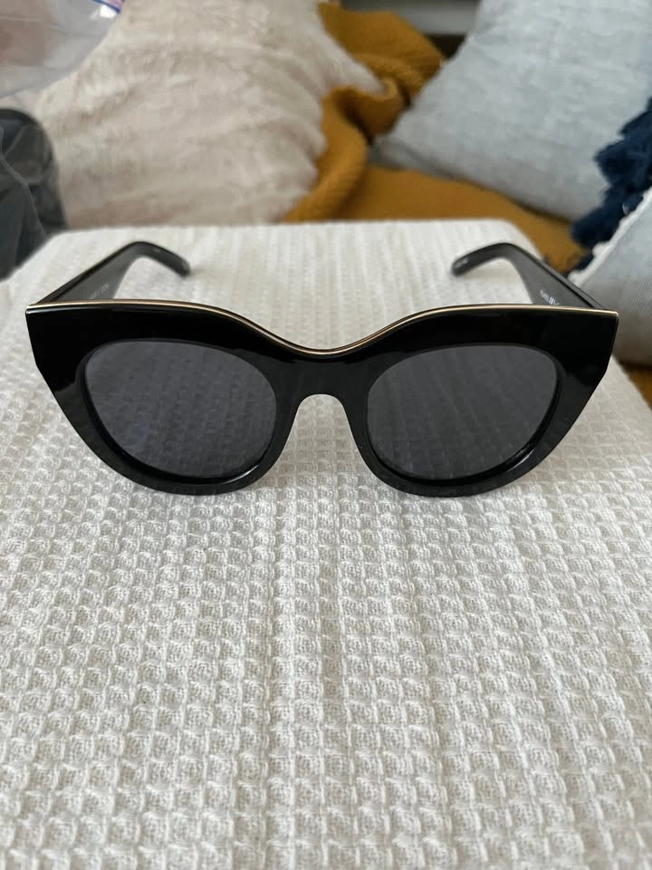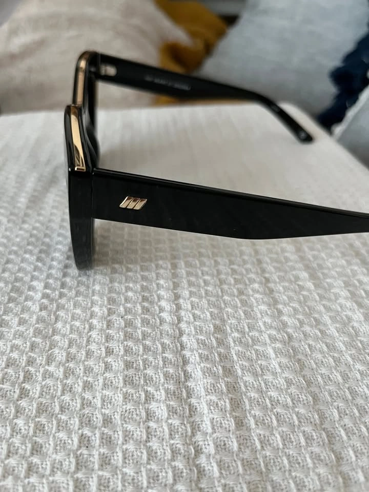 For sale is a pair of authentic Le Specs "Air Heart" sunglasses in a classic black and gold colorway. Condition: Excellent, pre-owned condition. The lenses and frames are free from any noticeable scratches or damage. Features: These sunglasses have polarized lenses, which are great for reducing glare from water and shiny surfaces. Model: "Air Heart" (Model number 2202564) Included: Comes with the original navy blue soft case. These are a perfect pair of stylish, high-quality sunglasses at an accessible price. Please message me if you have any questions! Location Pickering ON