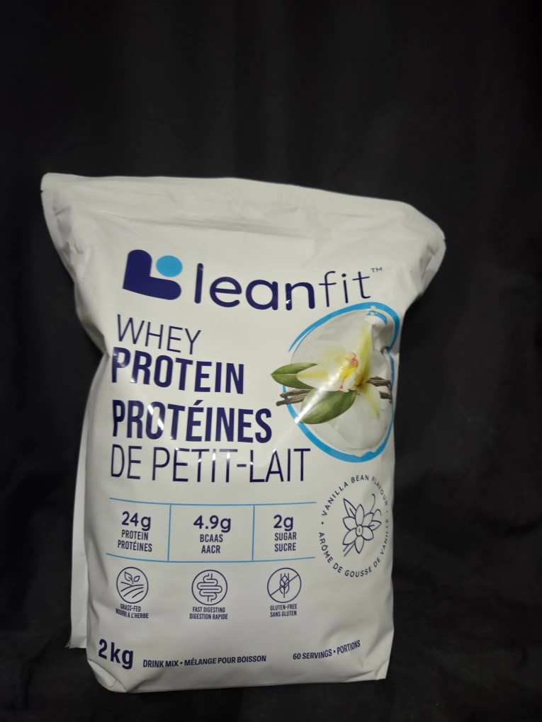 Selling a 2kg bag of leanfit Whey Protein in Vanilla Bean flavour! It's a drink mix that's grass-fed, fast digesting, and gluten-free. Each bag contains 60 servings, perfect for your protein needs