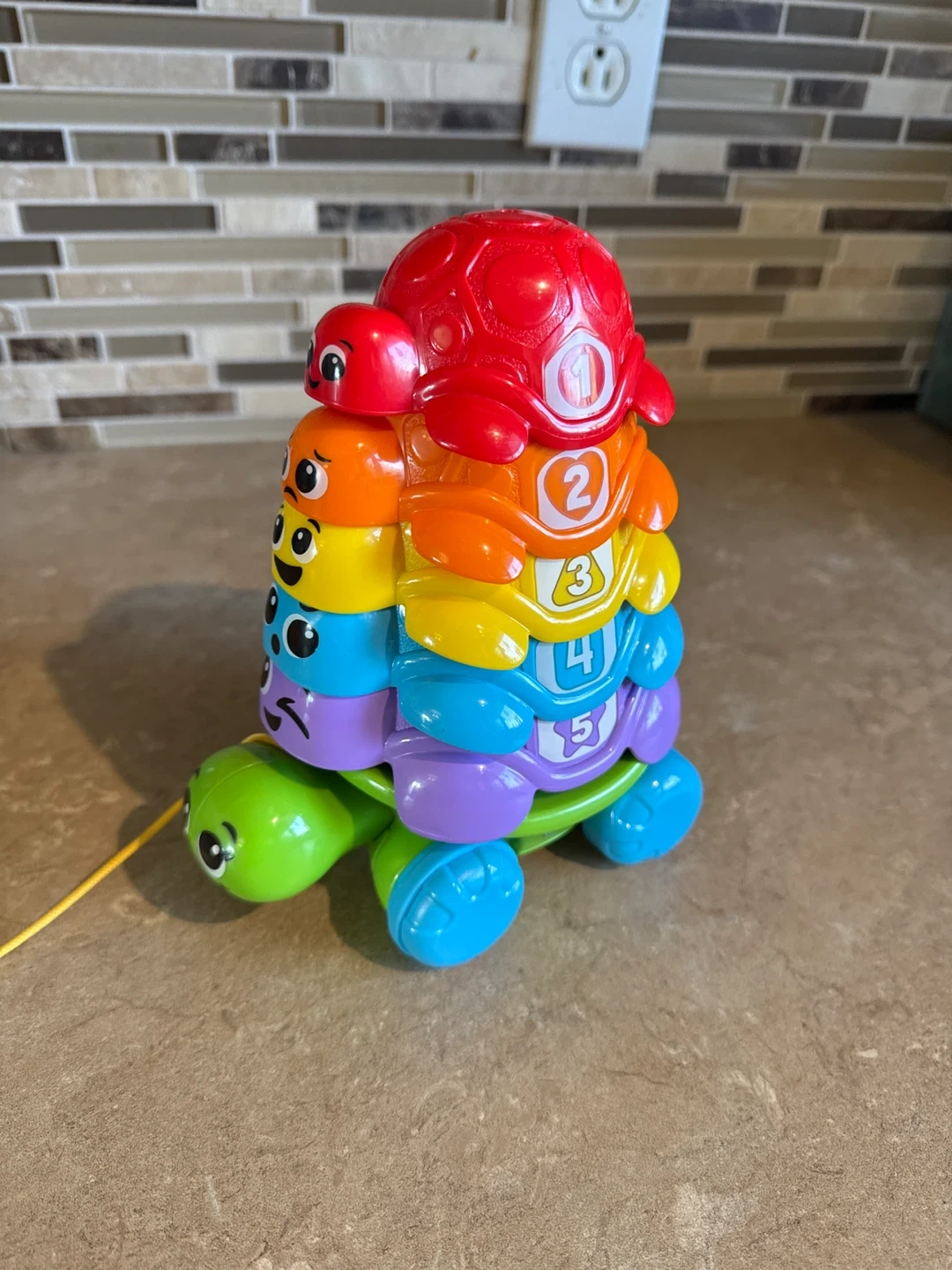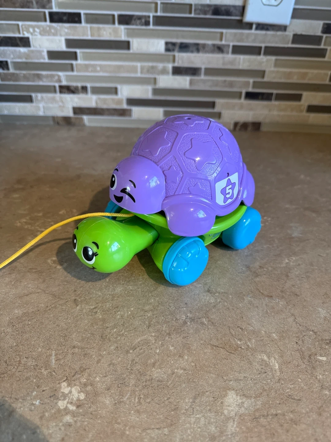Here's a Leap Frog Stack & Sort Turtle toy! It's in great shape and ready for a new home. This toy is perfect for helping little ones develop their fine motor skills and learn about colours and numbers. The turtles stack on top of each other, making it fun and engaging for kids