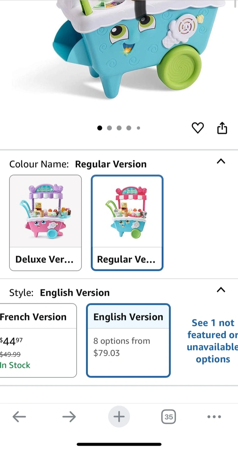 Selling a LeapFrog Scoop & Learn Ice Cream Cart! It's in great condition and ready for a new home. Perfect for little ones who love to play pretend and learn at the same time. It's the English version! Missing some accessories