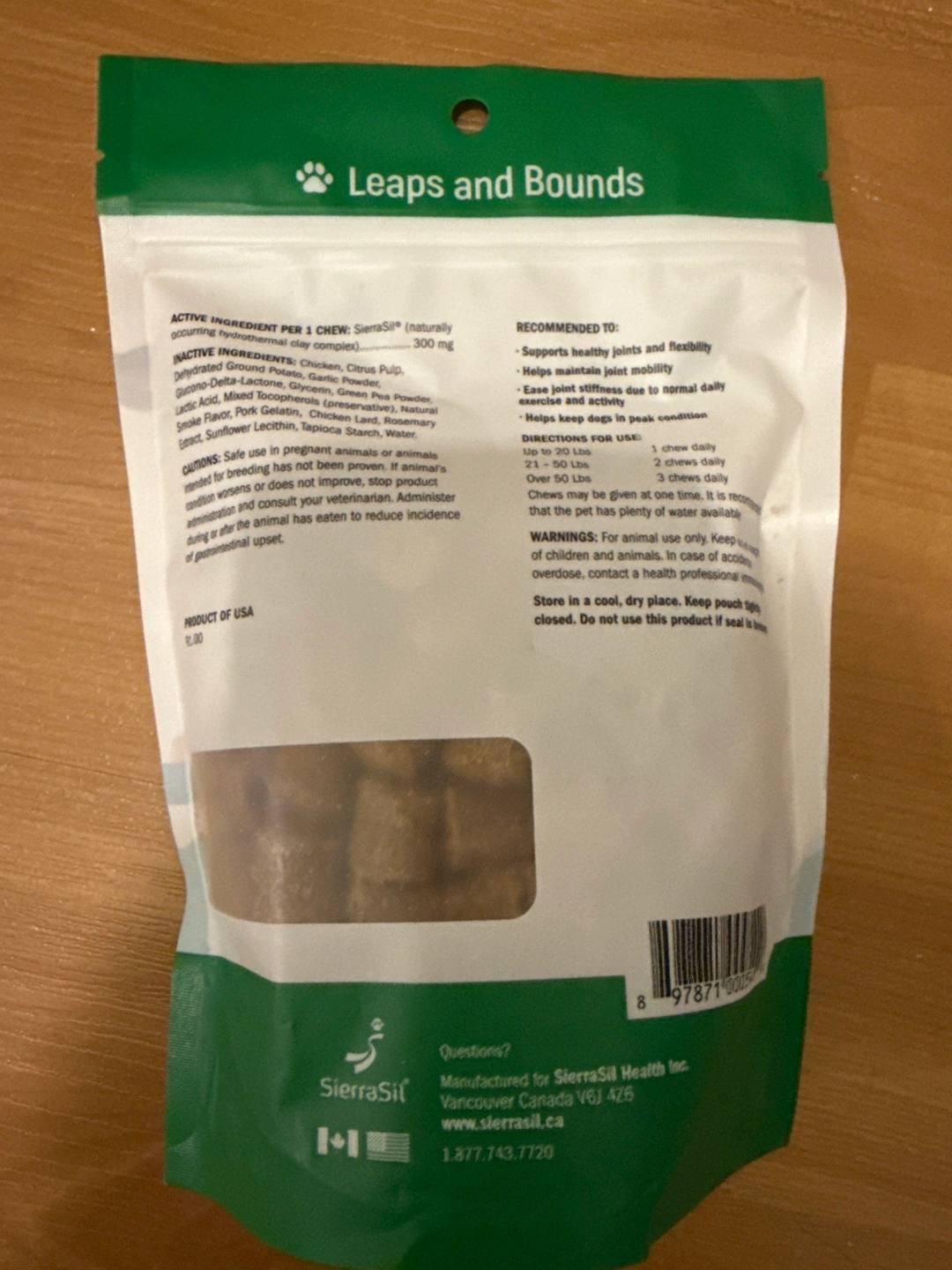 100 bite-sized chews. Supports healthy joints and flexibility. All natural, gluten-free, soy-free. Manufactured for SierraSil Health Inc. Brand new unopened.