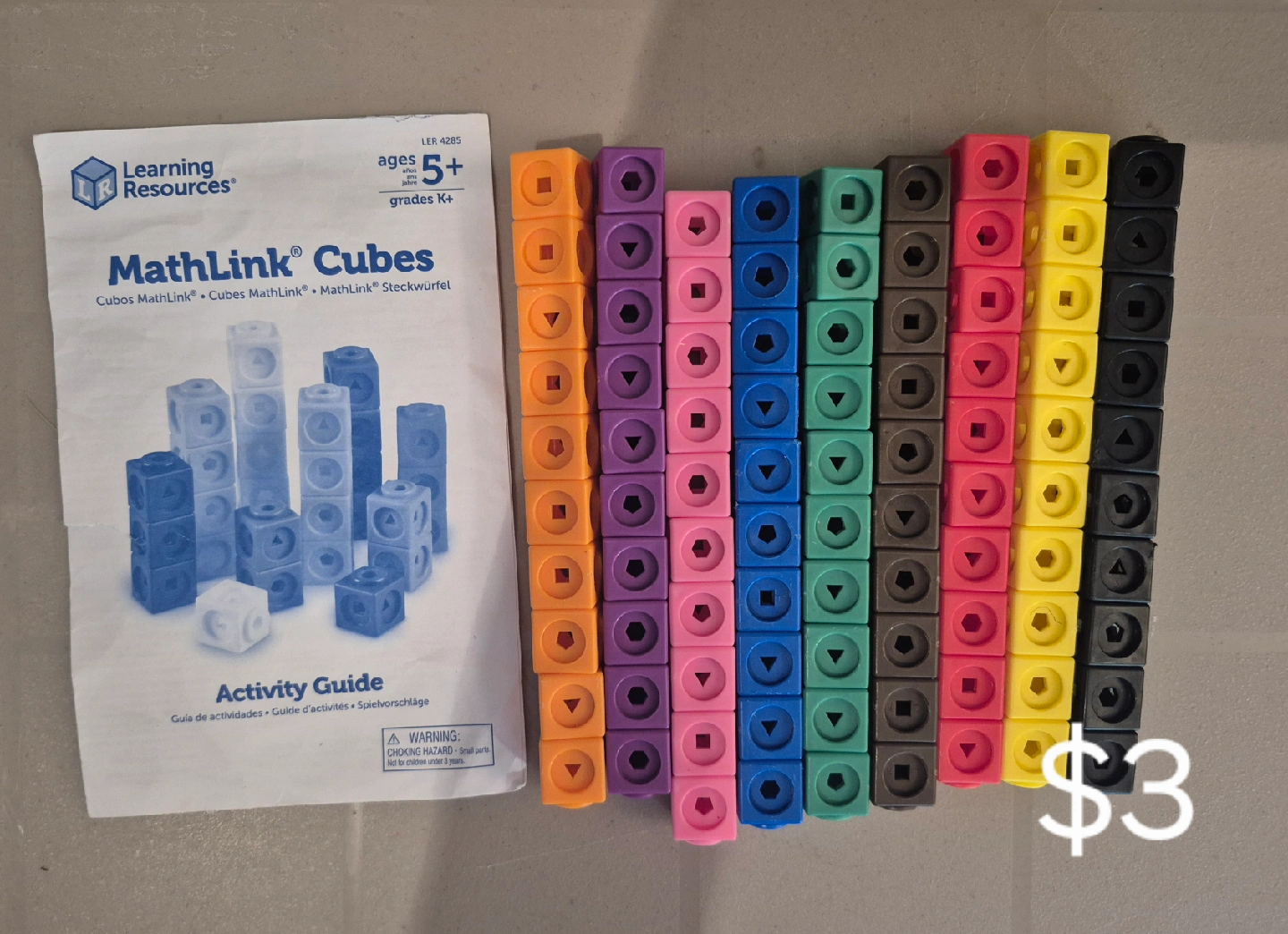 Selling a set of Learning Resources MathLink Cubes! Perfect for kids aged 5+ in kindergarten and up. Comes with the activity guide to help with learning and fun. Asking $5