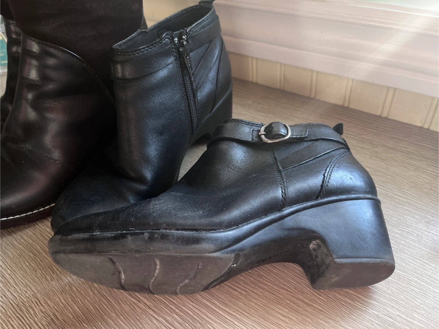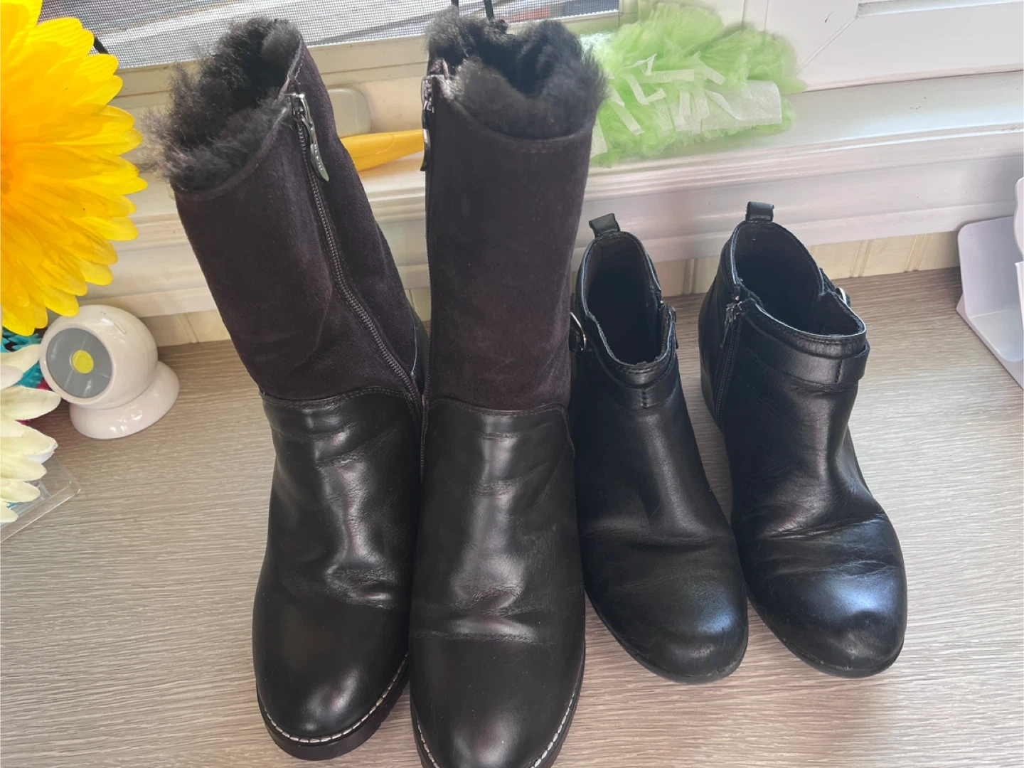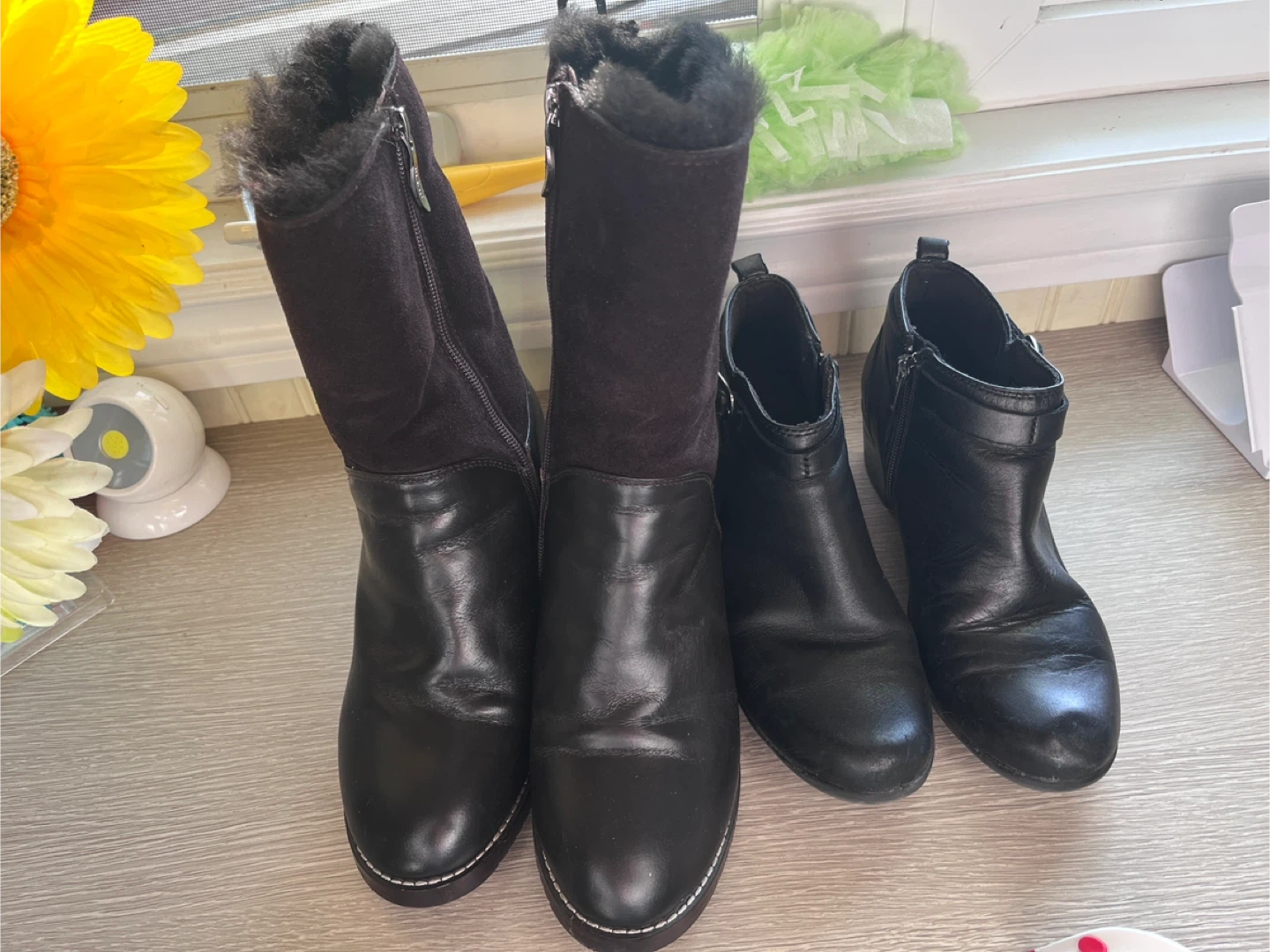 Selling leather Clark ankle boots 6M. They show some signs of wear, but are still in good condition for everyday use. The other pairs are size 8 fits US 7. Very warm and comfortable. Sheep skin liner. Genuine leather.