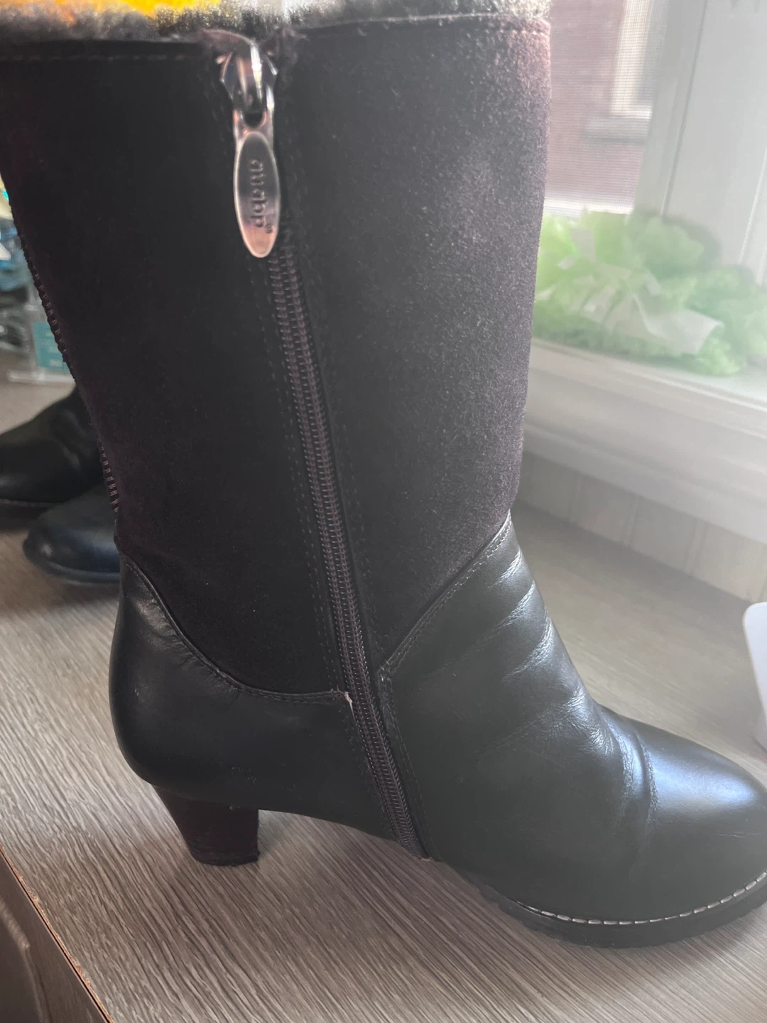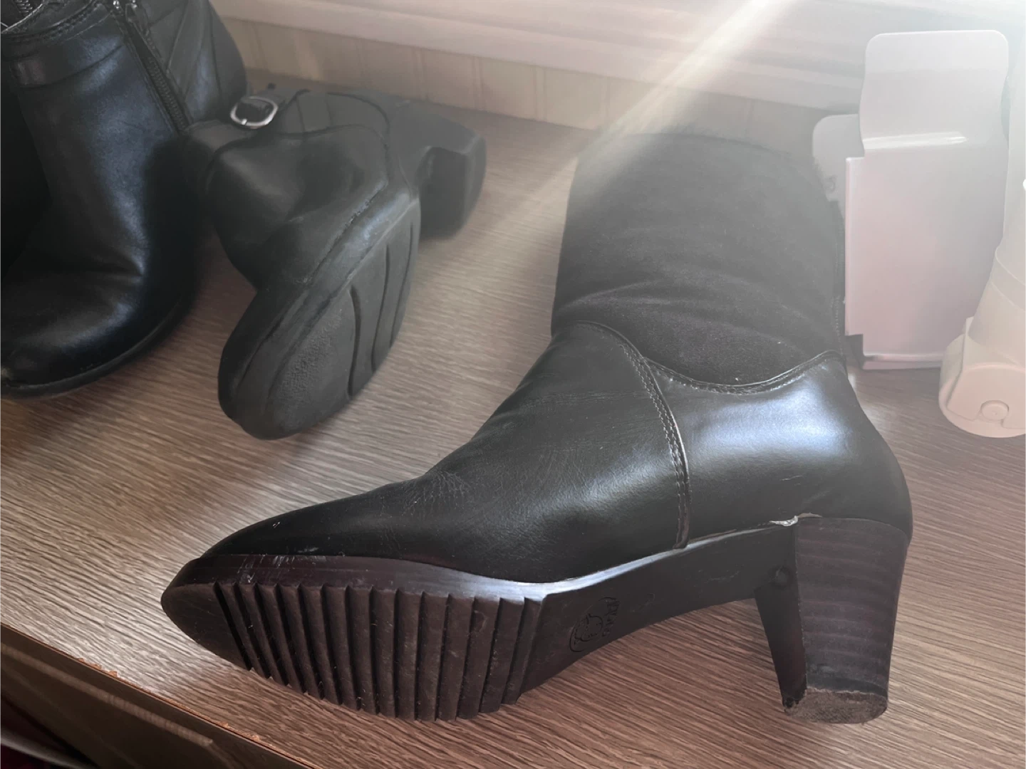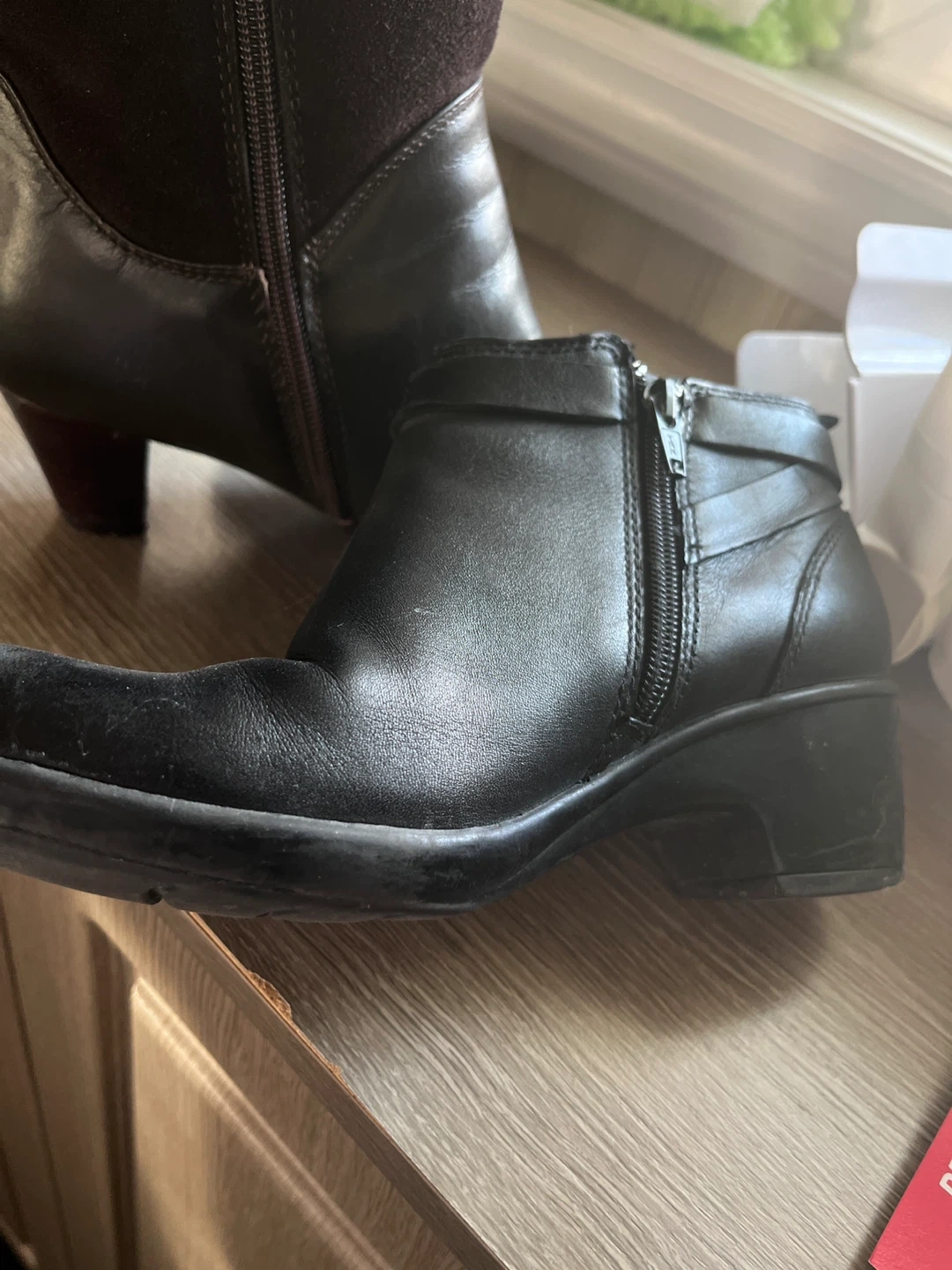 Selling leather Clark ankle boots 6M. They show some signs of wear, but are still in good condition for everyday use. The other pairs are size 8 fits US 7. Very warm and comfortable. Sheep skin liner. Genuine leather.