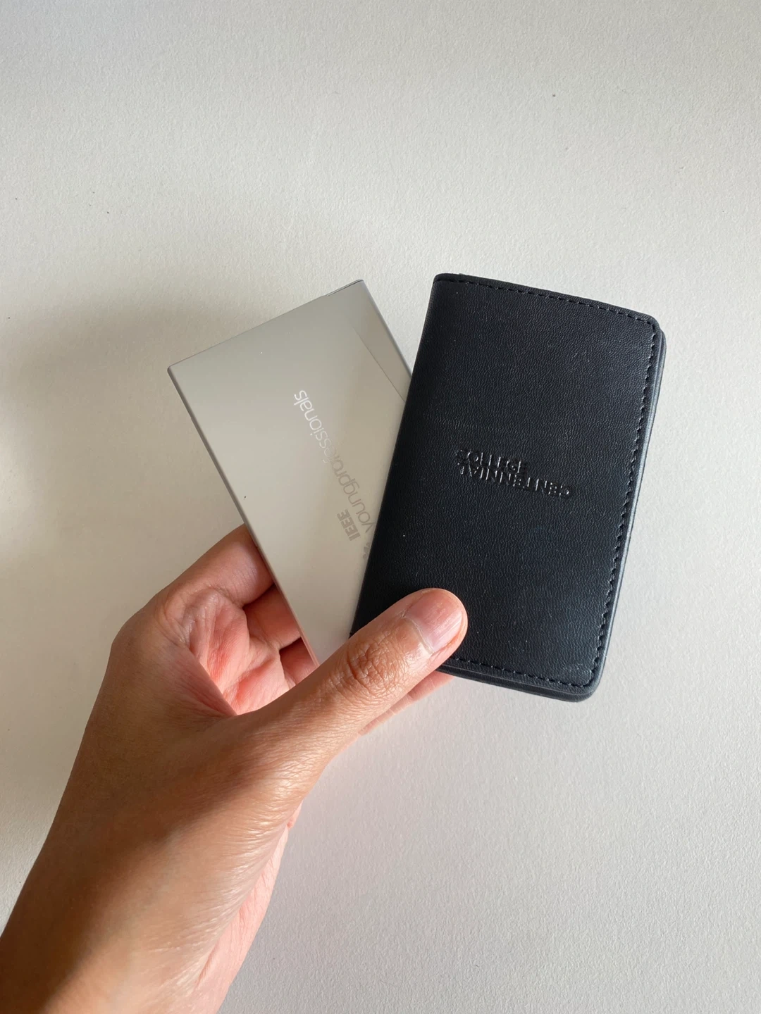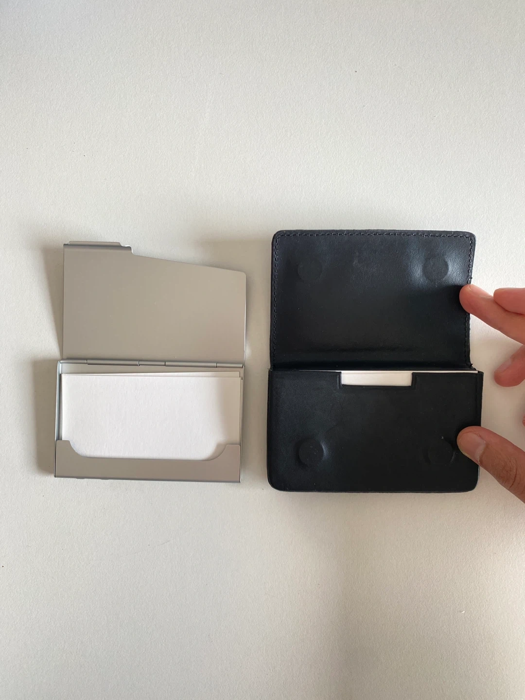 Set of 2 business card holders - one leather finish has magnetic closure and one metal finish ❤️Check out my other listings!