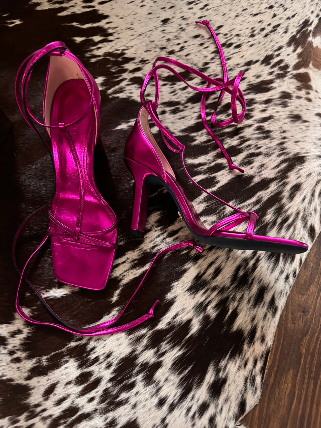 Zara hot pink metallic leather 4”/10cm curved heel sandals with thin cross-over ties. New unworn. *if it’s listed it’s available *cash only *discount if you buy multiple items