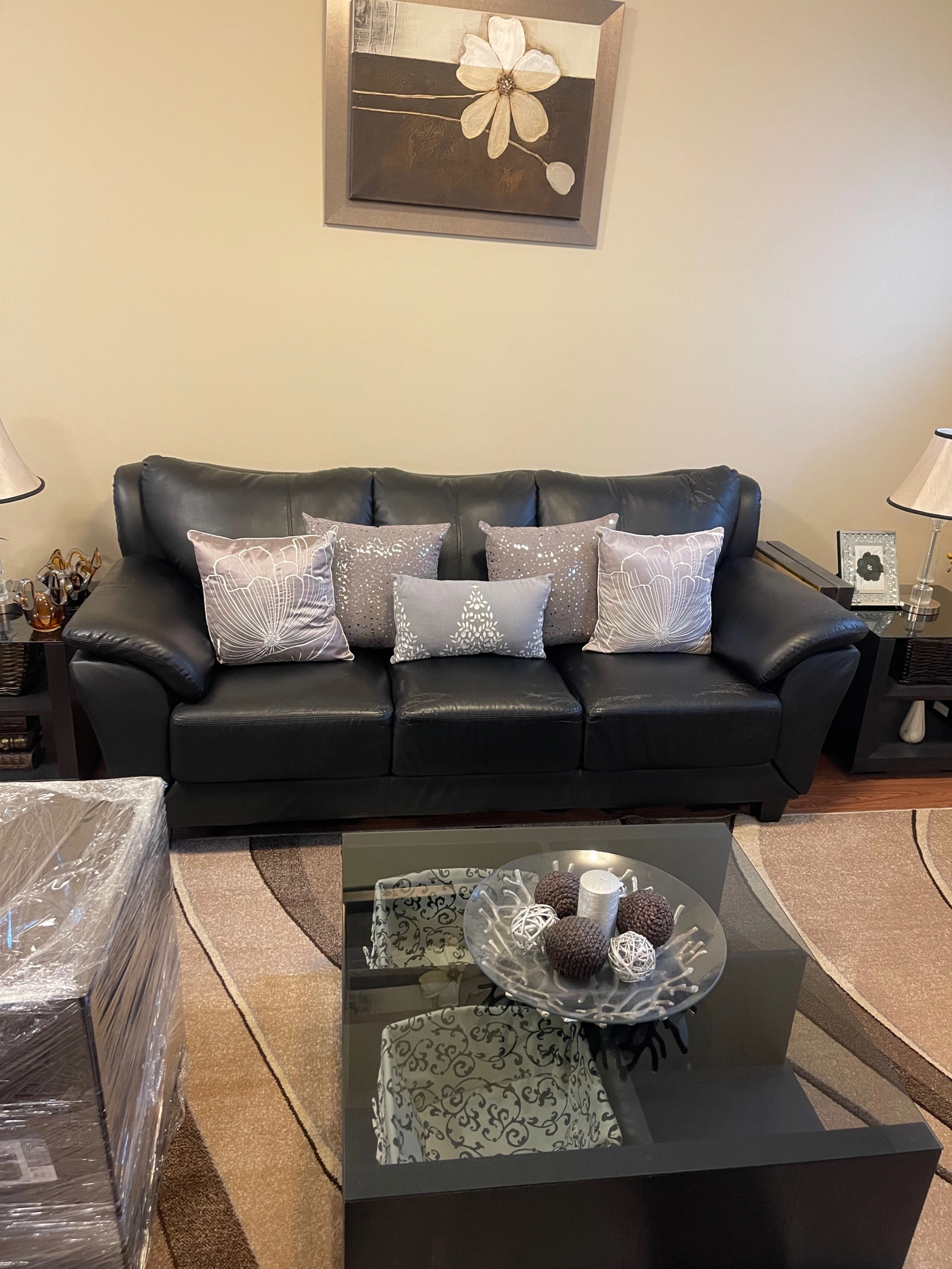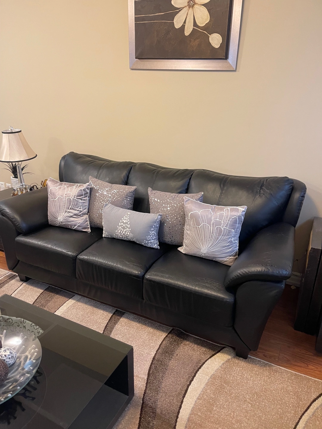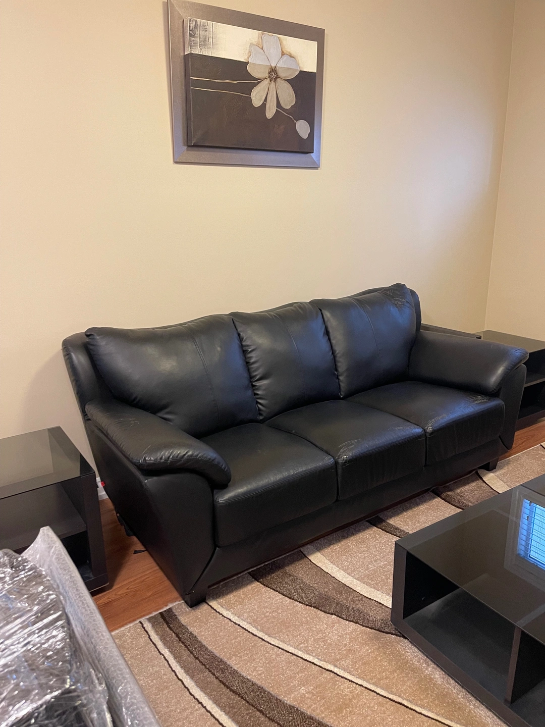 3 Seat Leather Sofa only. Pillows not included. Moving Sale. Well kept with minor wear and tear. Dimensions: 81.5” Width 41” Depth 34” Height Cash only. Pick up only, no delivery. OBO but no low ball offers. Cash only. If this ad is up, this item is still available.