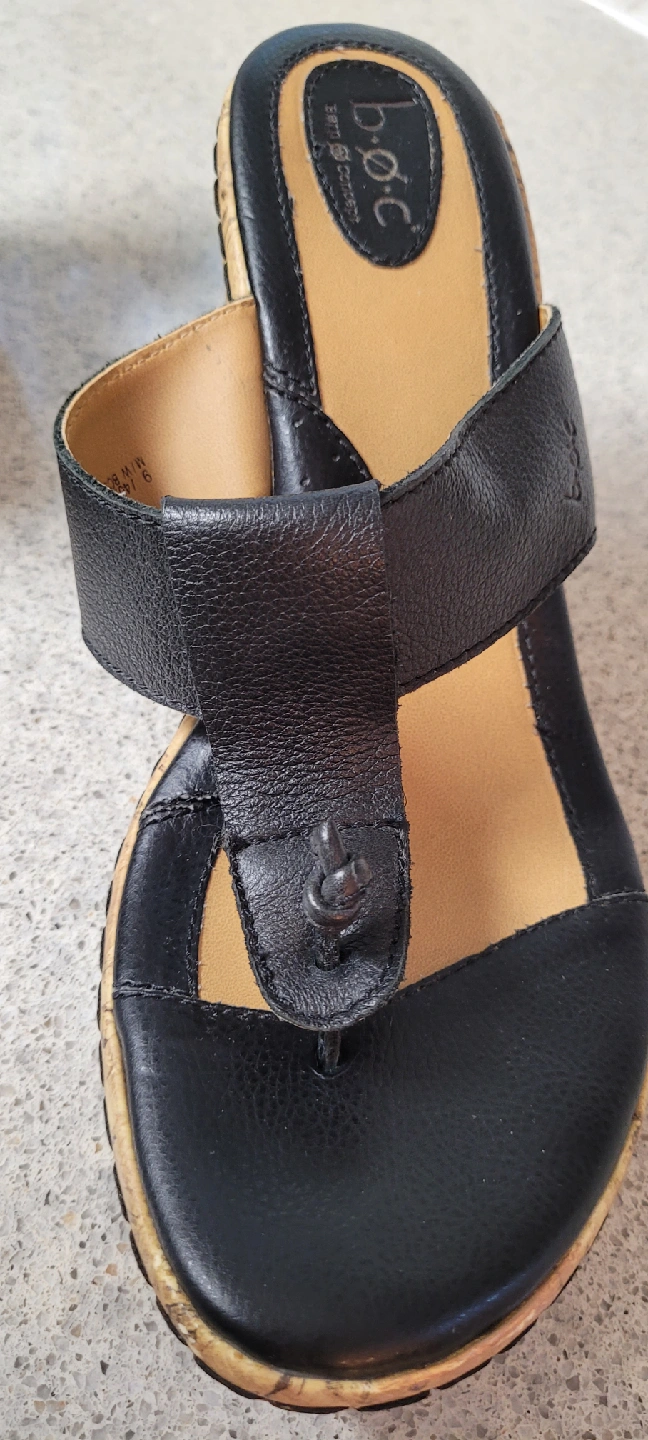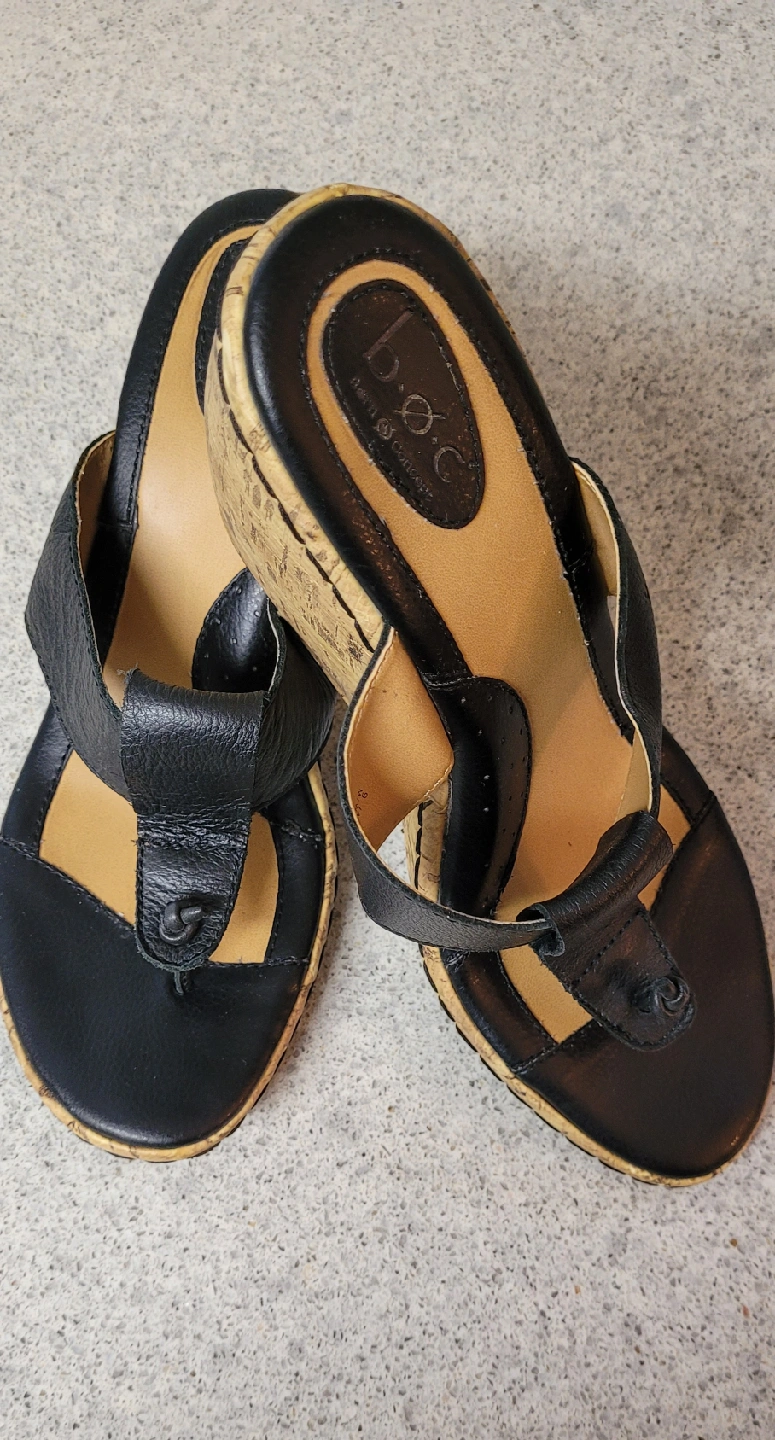 *Black sandal-leather upper *Cork 3.5" wedge *Size 9 (fits 8.5-9) *Worn only a few times