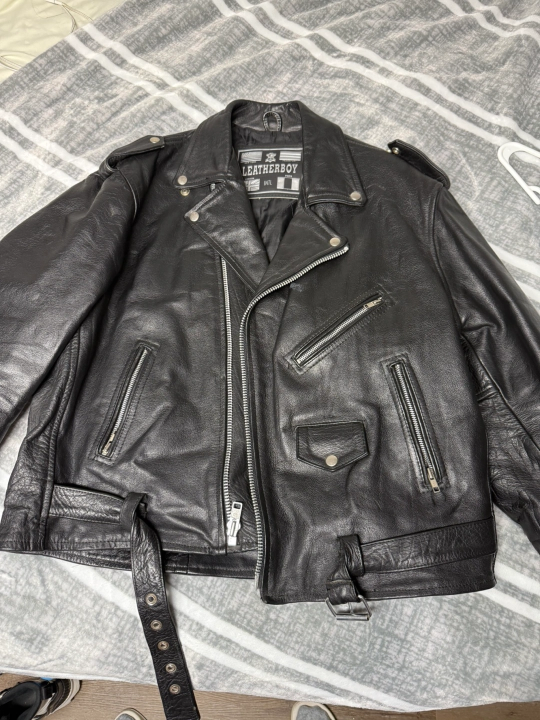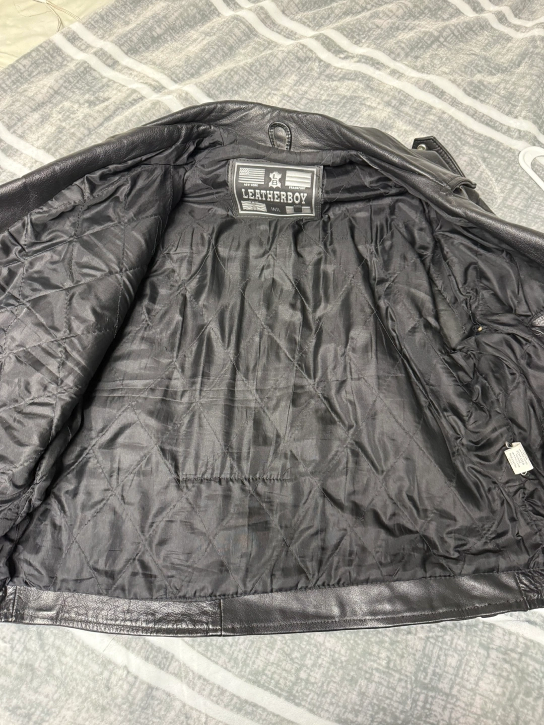 Selling a Leatherboy black leather jacket. It's in great condition and ready for a new home! Perfect for adding a bit of edge to any outfit, 9/10 100% leather, it said M but is L