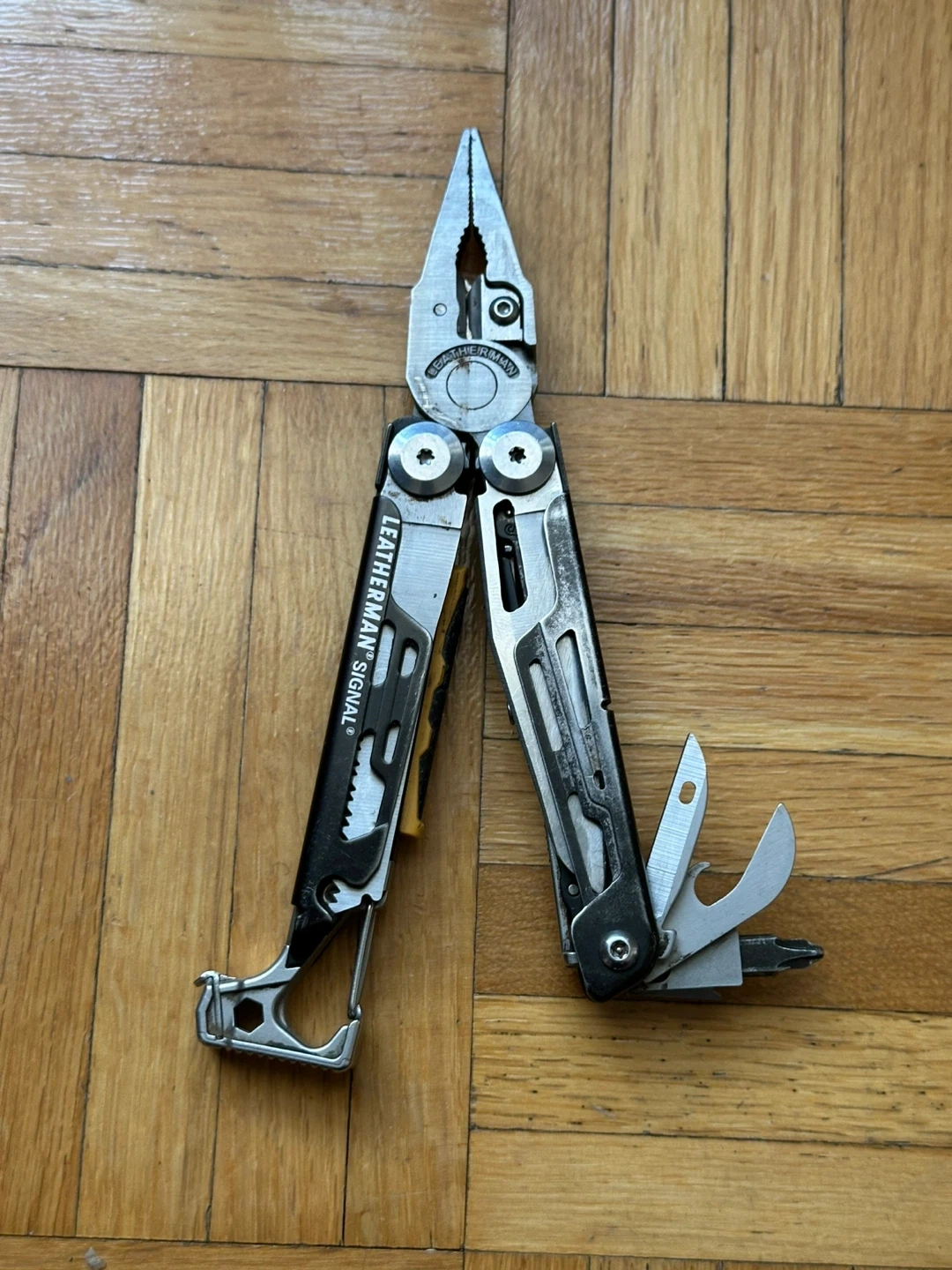 Selling a Leatherman Signal multi-tool. It's a versatile tool with a variety of functions, perfect for outdoor adventures or everyday tasks. It appears to be in good condition and ready for its next owner!