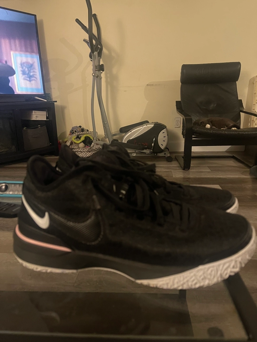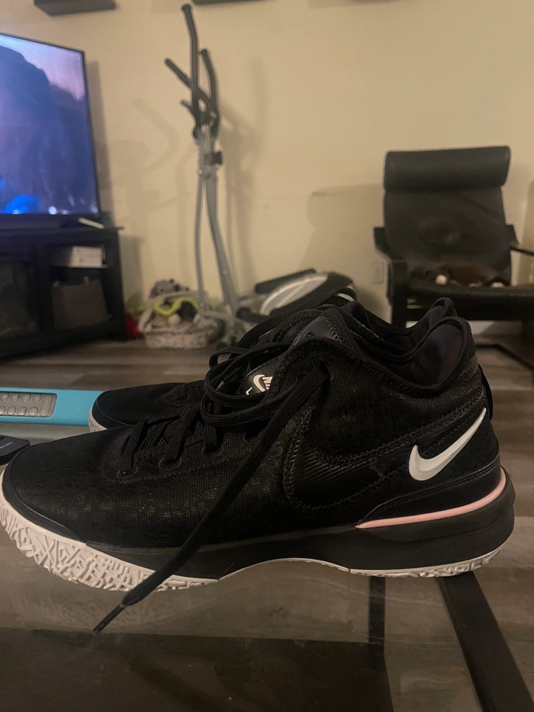 LeBron next gen Black with white and pink accents. Low-top design. Good condition. Slightly used. Size 10.5 Comes with box Serious buyers only