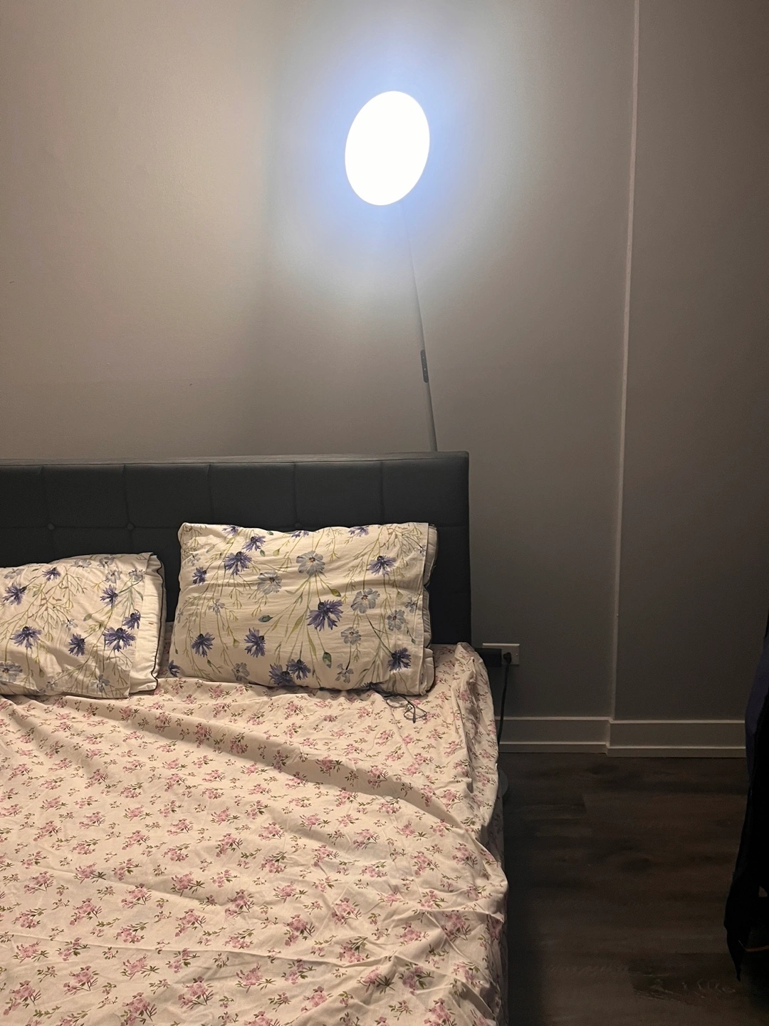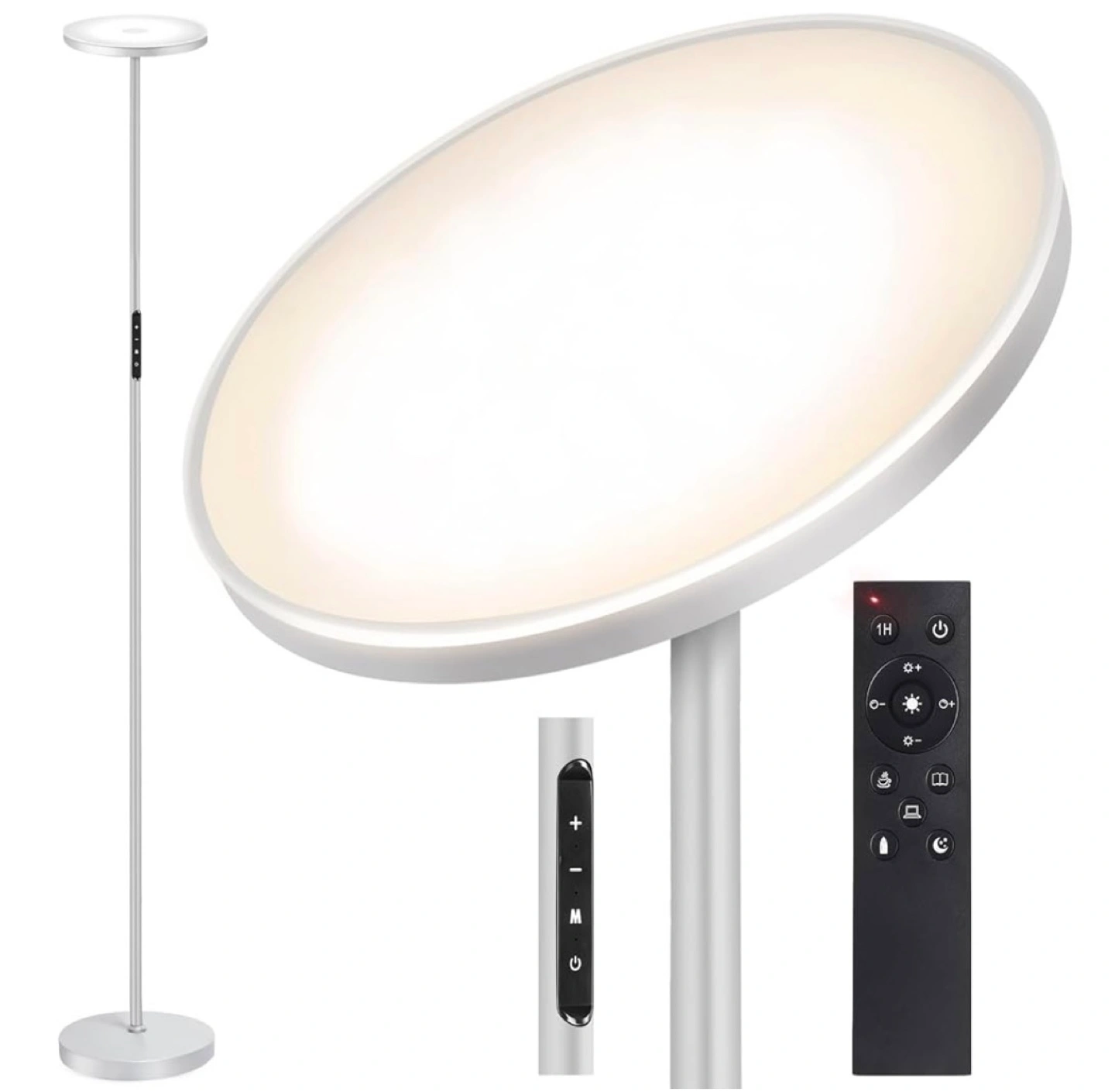 64Selling a silver LED floor lamp! It has a slim design and adjustable brightness settings. Perfect for adding a modern touch to any room!