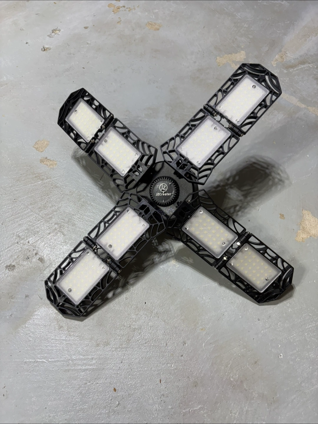 Pick up Pefferlaw Black light fixture. Has six light panels. Panels are in a square shape. Would make a great addition to your garage. About 100 hours use. 2 of the larger ones 20 each 2 of the smaller ones 15 each