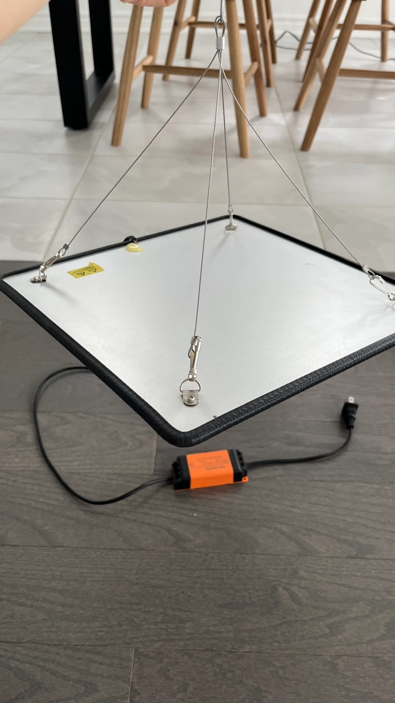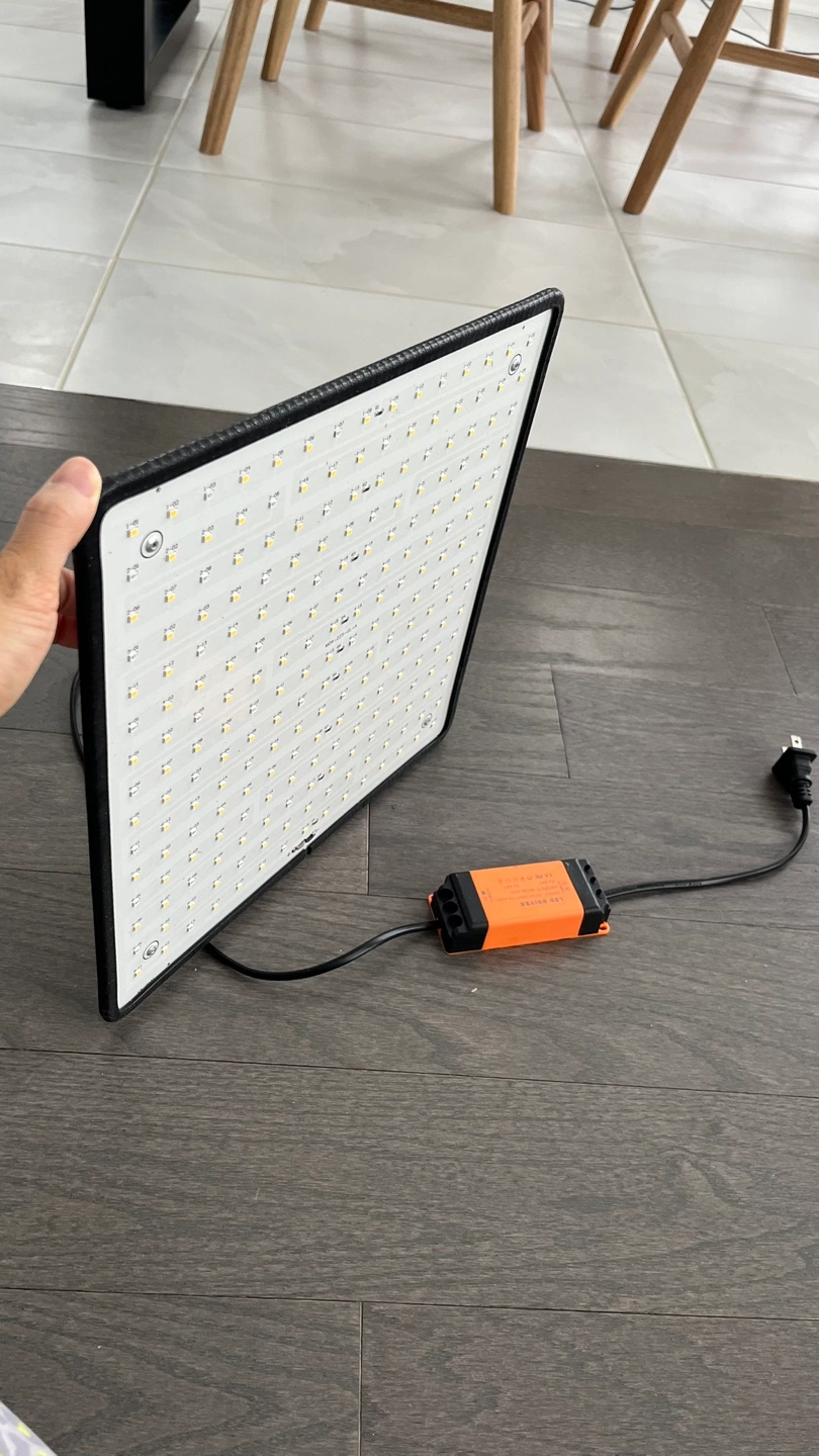 Square panel with a grid of small LED lights. Black border around the panel. Includes a power adapter and cord. A great purchase to encourage the growth of plants in your home environment.