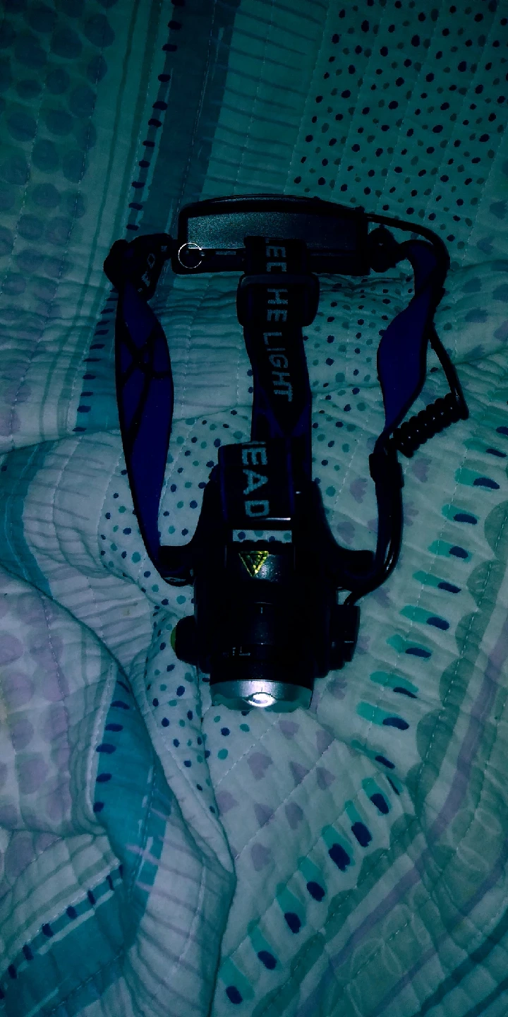 Show allSelling a headlamp with an LED light. The band is black with purple accents and says 'LED Head Light'. Great for camping or working in dark spaces!
