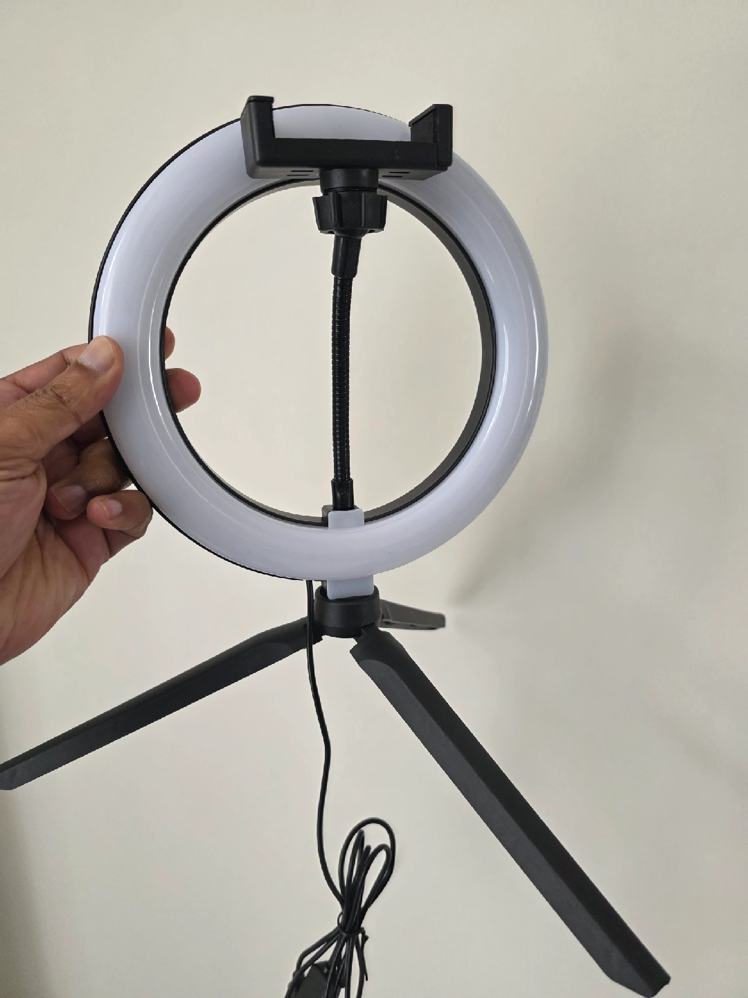Get that perfect lighting for your photos and videos with this LED ring light! It comes with a handy tripod stand and a phone holder. The adjustable brightness settings let you customize the brightness of the light.