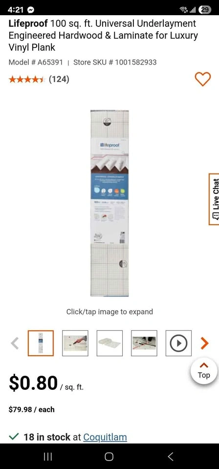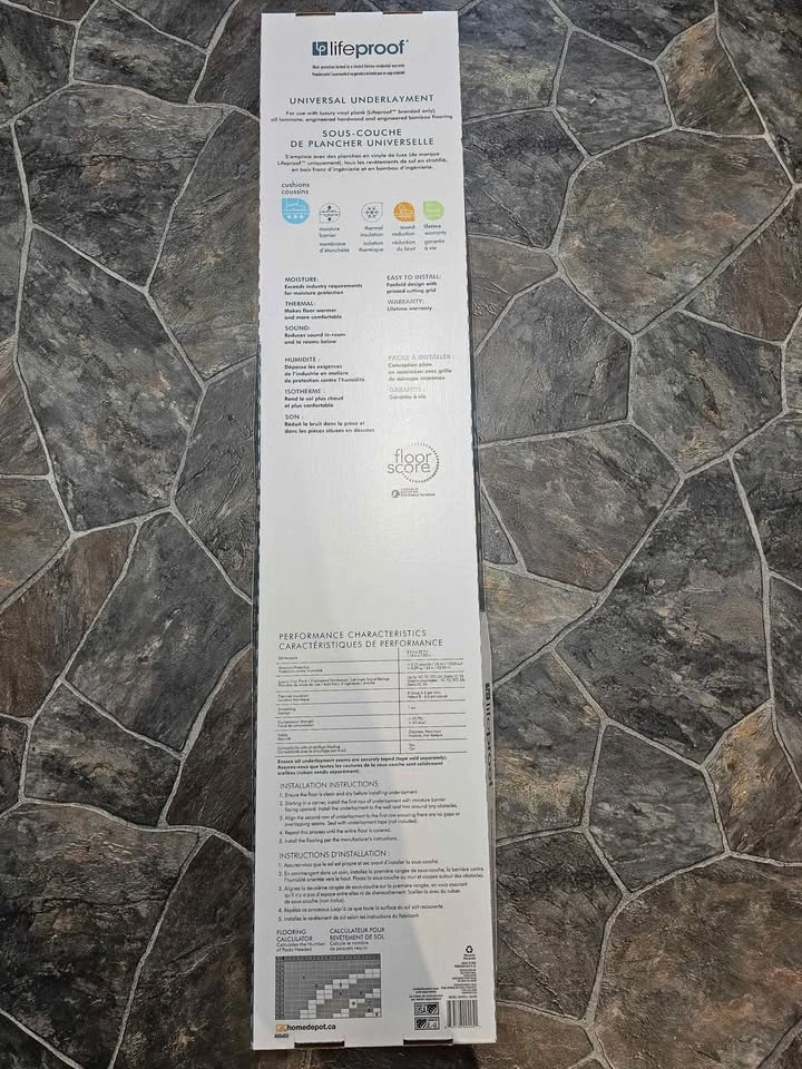 Why buy a full new box when you can buy our 2 partial boxes of Lifeproof underlay. The sizes of the 3 remaining pieces: 40" x 47" 9 1/2" x 70 1/2" 180" x 47"