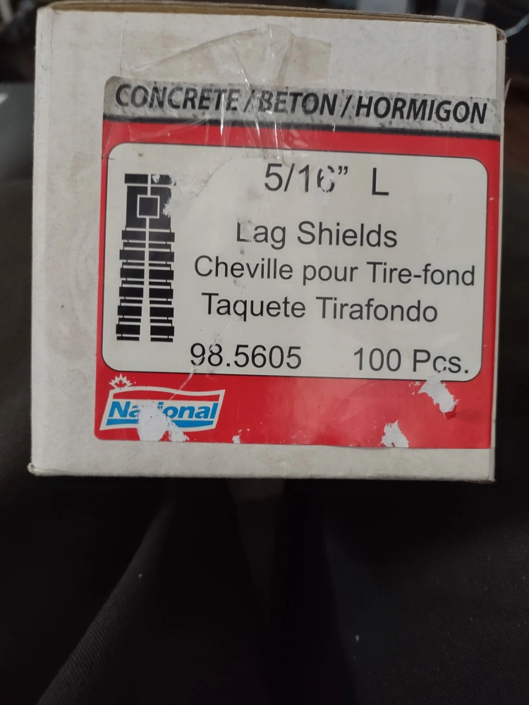 I have a box of 5/16" leg shields for sale in new unused condition. There are 100 leg shields in the box I bought but never used them. The can be used to ancher things into concrete,brick or blocks. Asking $60 let me know ty