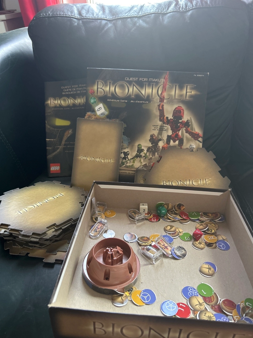 Selling a LEGO Bionicle Quest for Makuta adventure game! It's a fun game for LEGO and Bionicle fans alike. Box is included and contains the game pieces pictured. Ready for a new home!