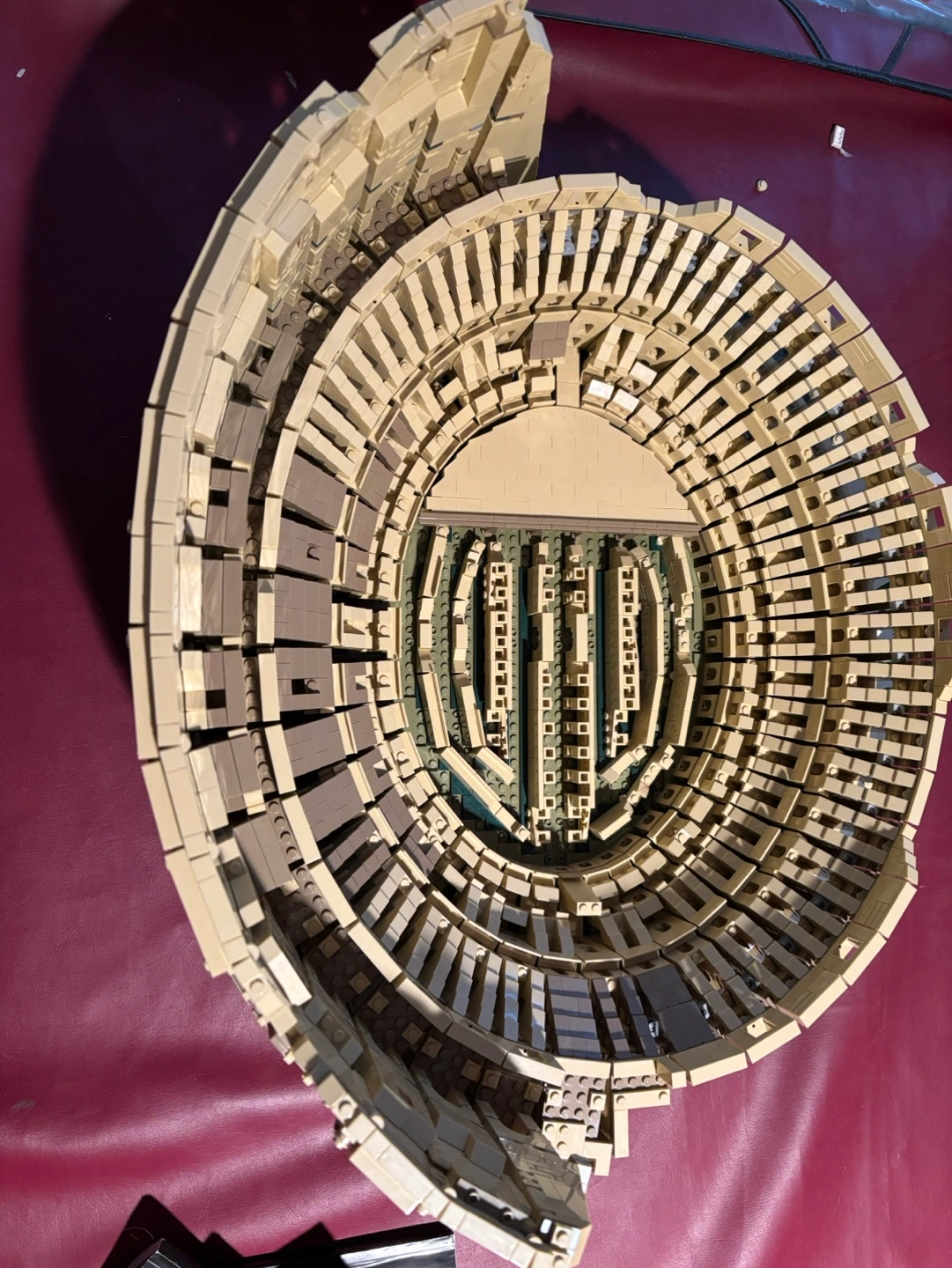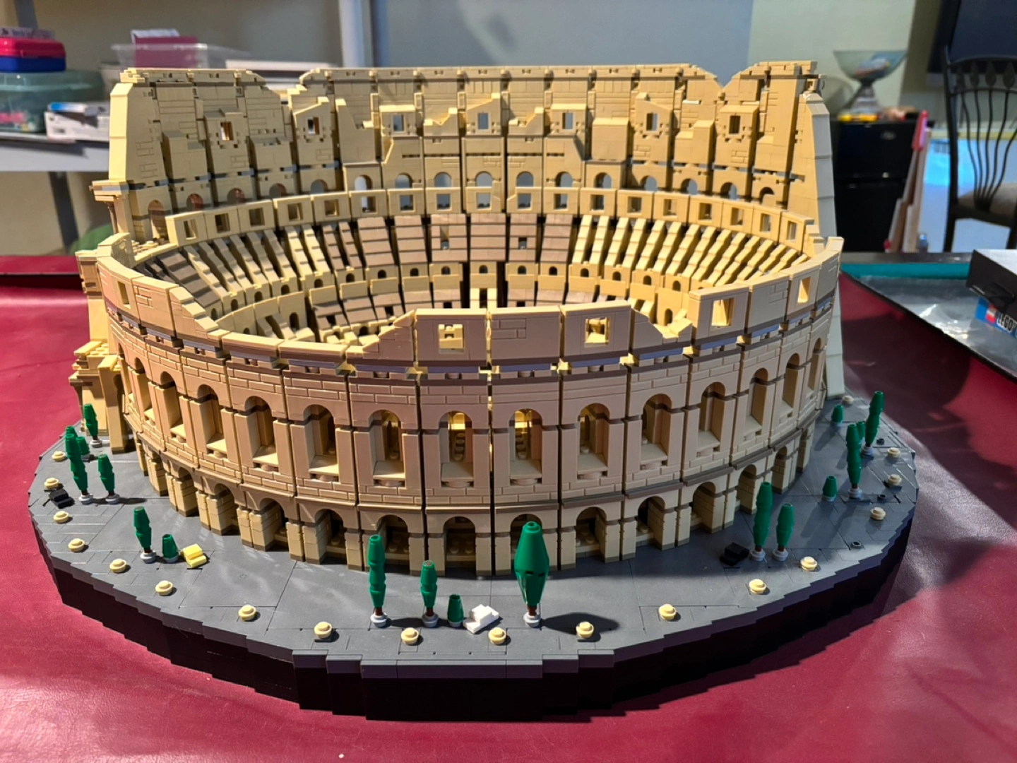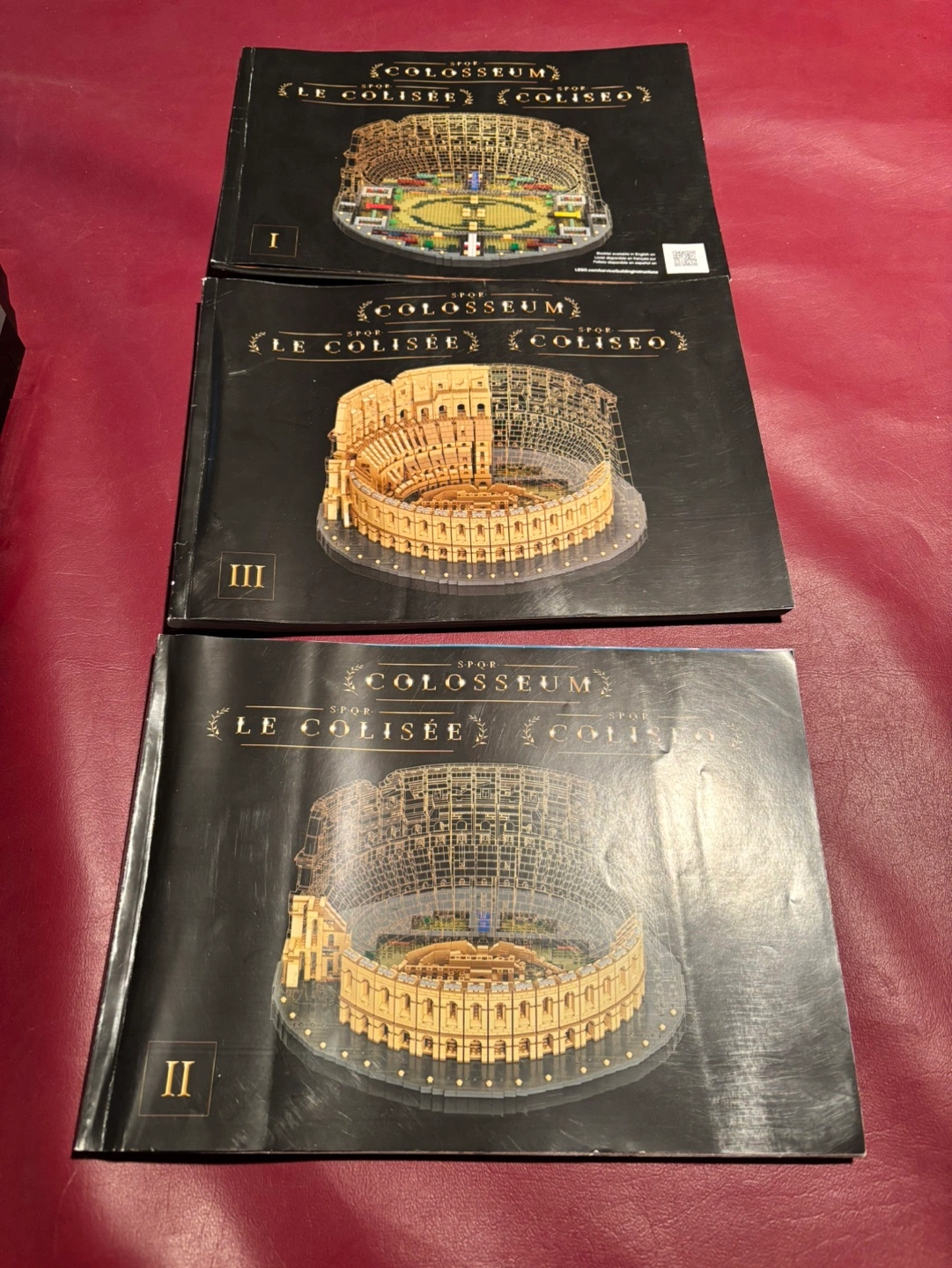 LEGO Colosseum set 10276. Fully built, includes all pieces and instruction booklets. Great project for LEGO enthusiasts.