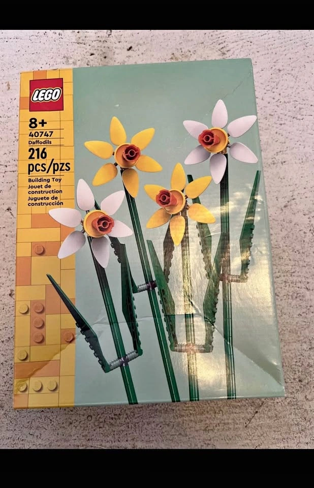 Brand New In Box, Unopened, Factory Sealed. Box has retail shelf wear. Comes as shown. Retails for $19.87 + taxes. Great Seller Rating. Adult Collector. SF/PF home. FCFS PICK UP ONLY Contact to arrange pick up in the Riverbend area on Beeston Drive. Iāll give house number when you msg you are on the way to pick up. Give spring flowers that will last forever with this LEGO Daffodils (40747) celebration gift. Featuring 4 yellow and white pastel-colored blooms, this set is perfect for kids, boys and girls aged 8 and up, as well as adult flower fans. These make a great birthday, Mother's Day, Easter, or just because - gift! The buildable posy includes 2 yellow daffodils and 2 white daffodils, each with green stems and adjustable leaves to encourage customization. Once complete, they can be displayed as room decor on their own or combined with other LEGO flowers (sold separately) to create a larger, more colorful bouquet. Contains 216 pieces. Each daffodil stem measures over 11 in. (30 cm) tall.